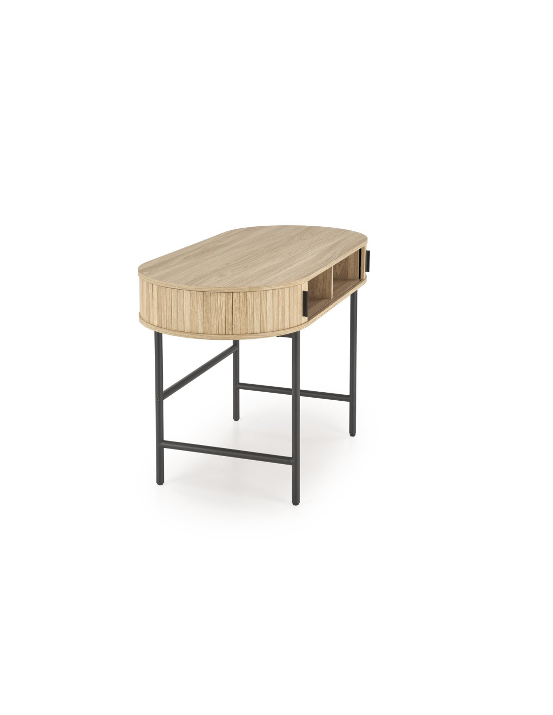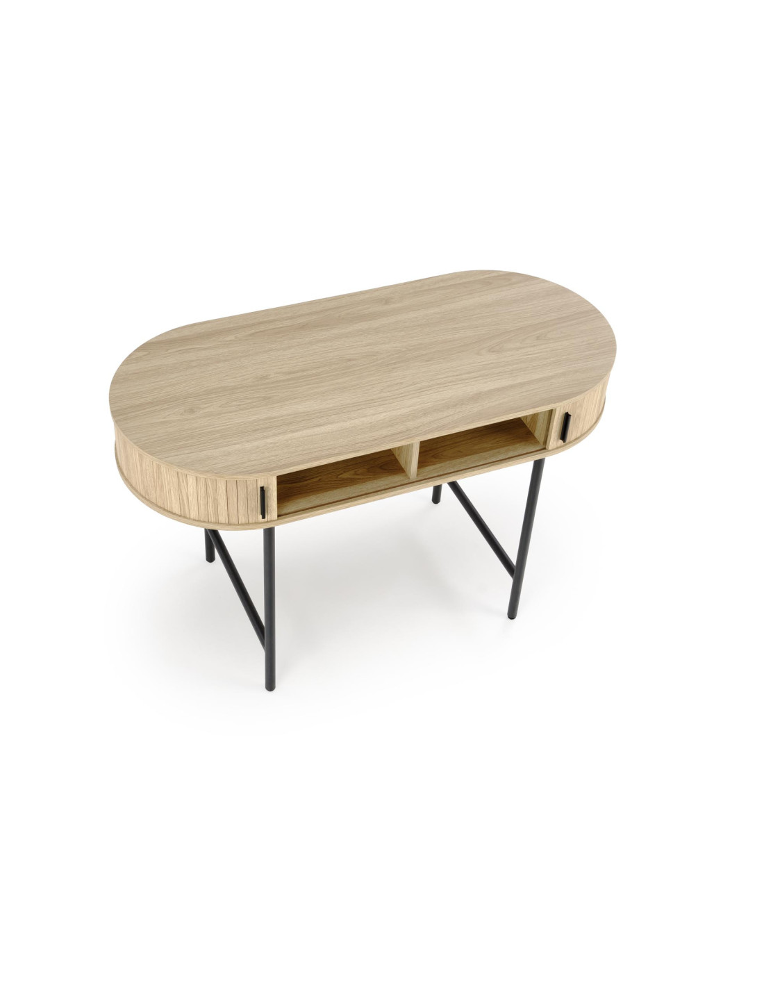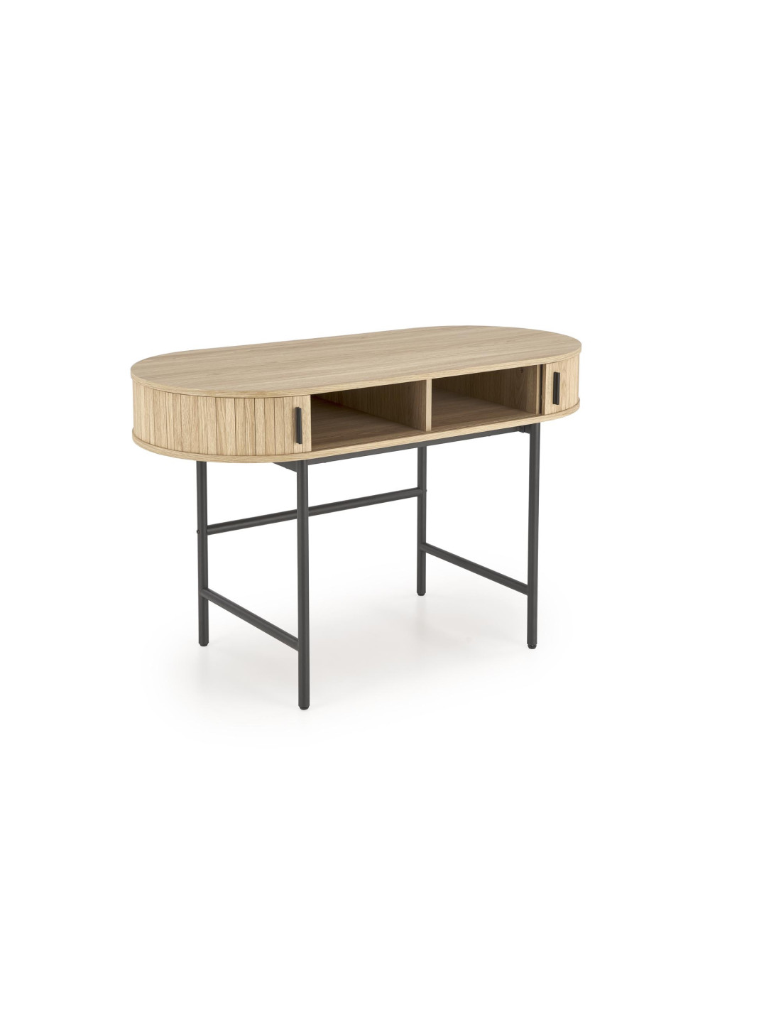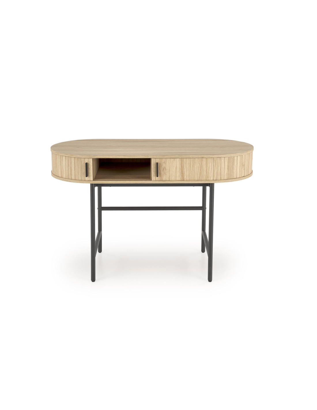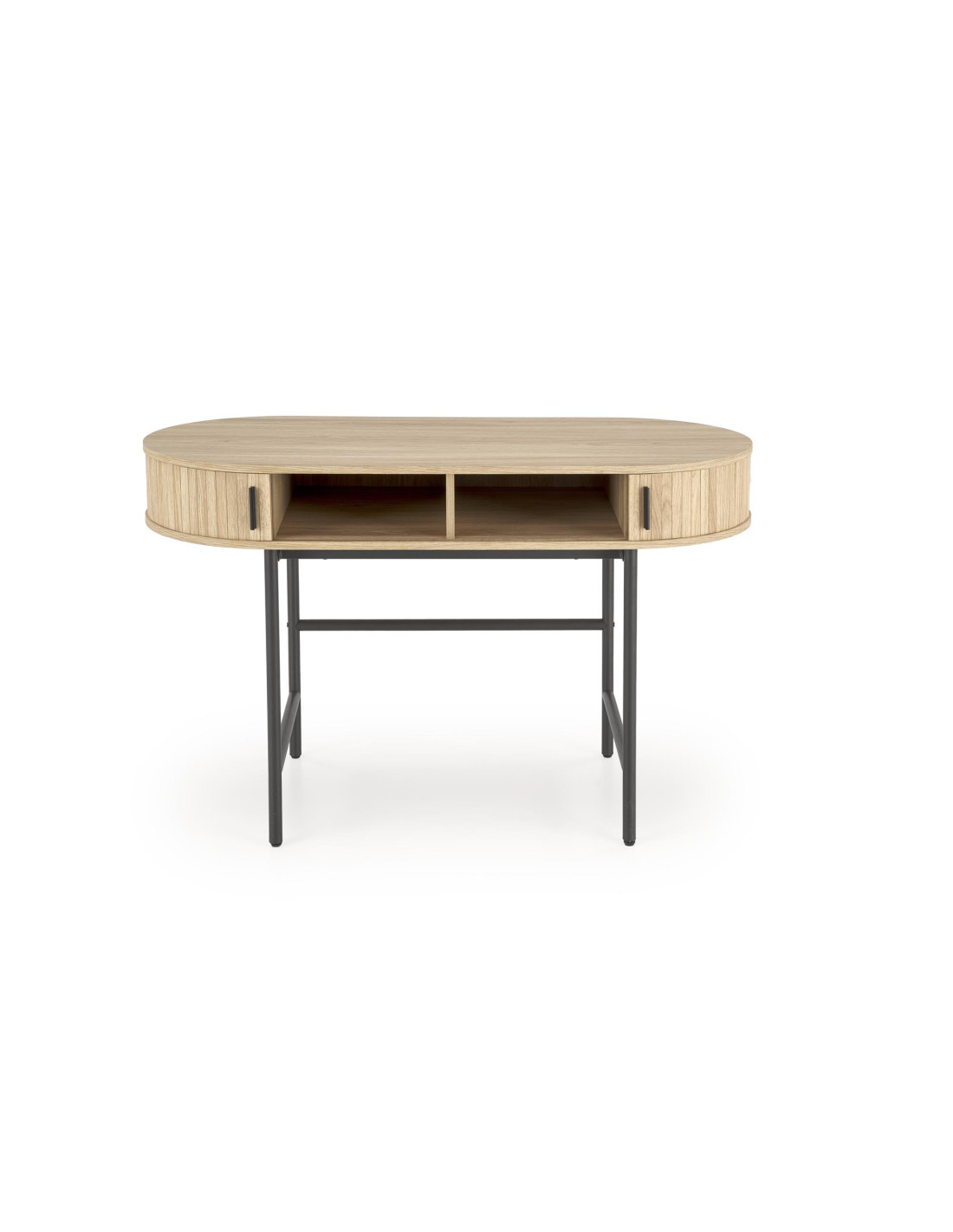 - ✅ Funkcjonalne przechowywanie: Dwie otwarte półki oraz dwie zamykane szafki po bokach pozwalają na uporządkowanie przestrzeni roboczej.