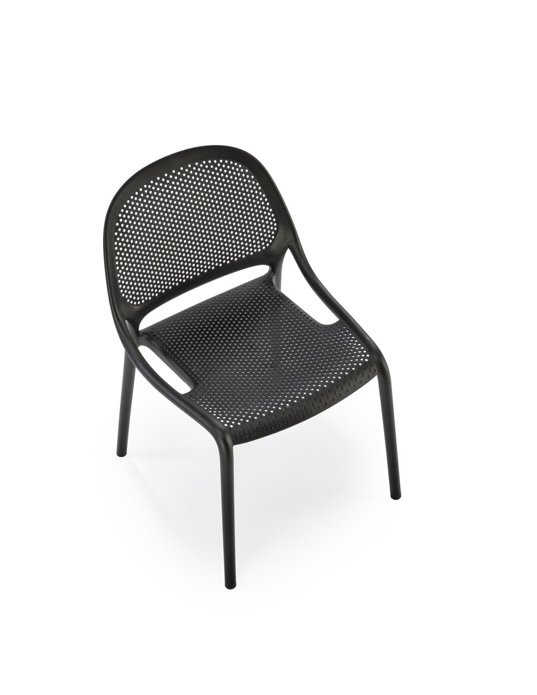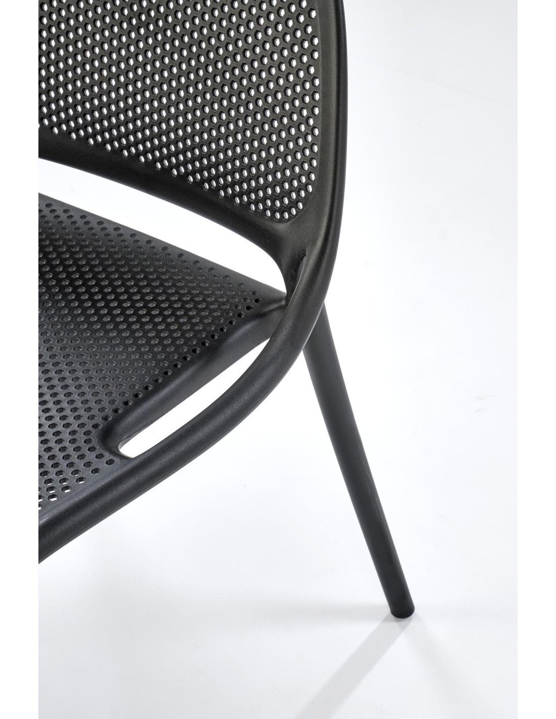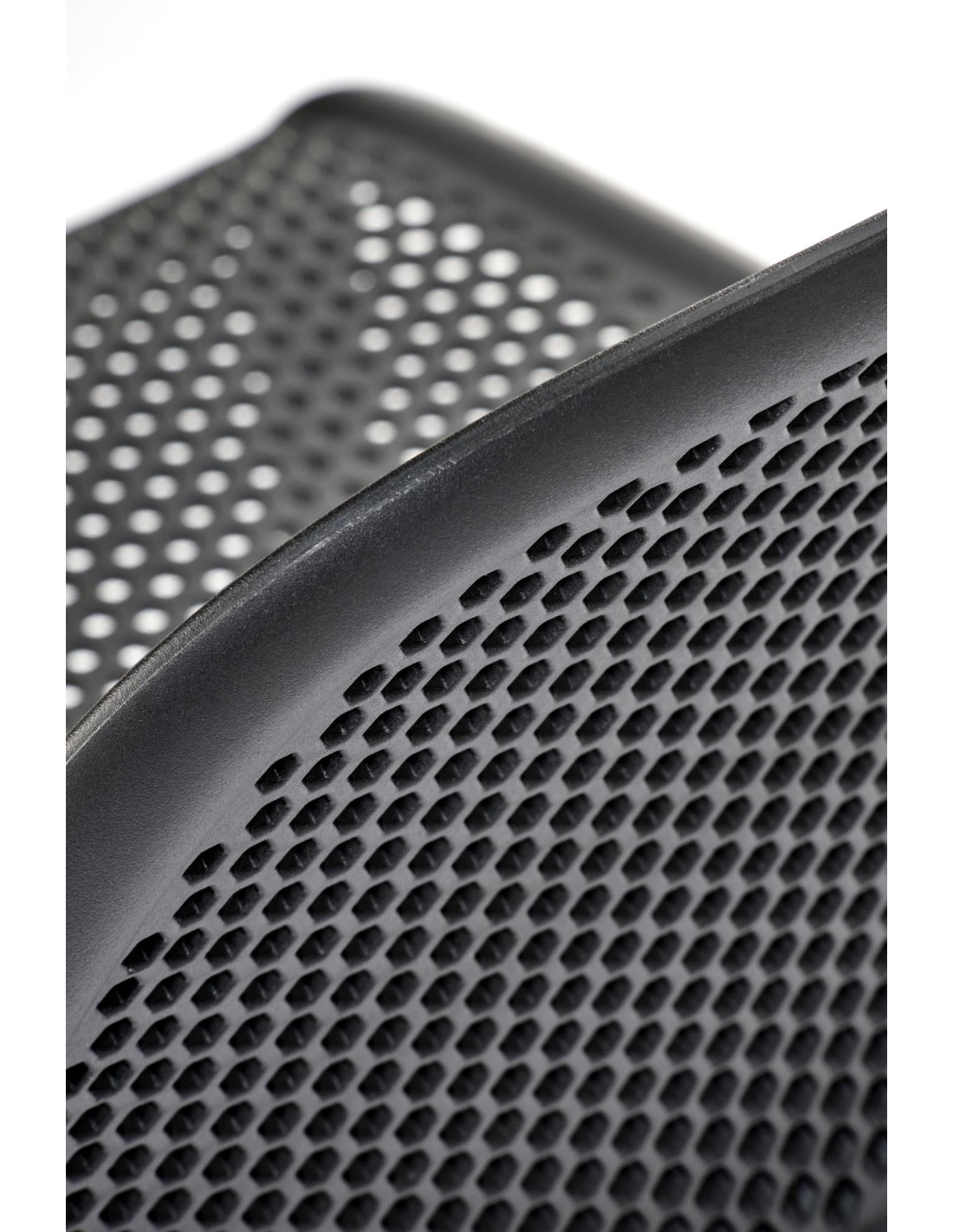 Krzesło K532 charakteryzuje się perforowanym siedziskiem i oparciem, minimalistycznym designem oraz możliwością sztaplowania.