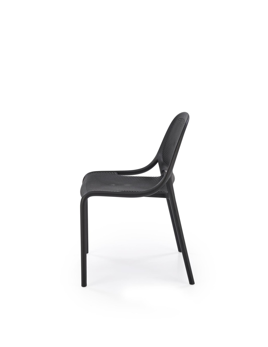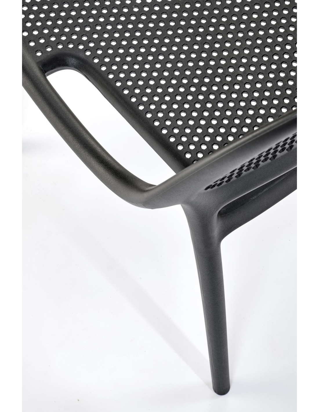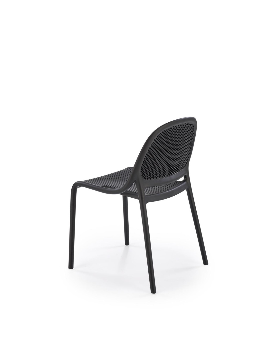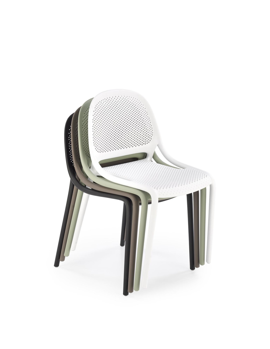 Krzesło K532 charakteryzuje się perforowanym siedziskiem i oparciem, minimalistycznym designem oraz możliwością sztaplowania.