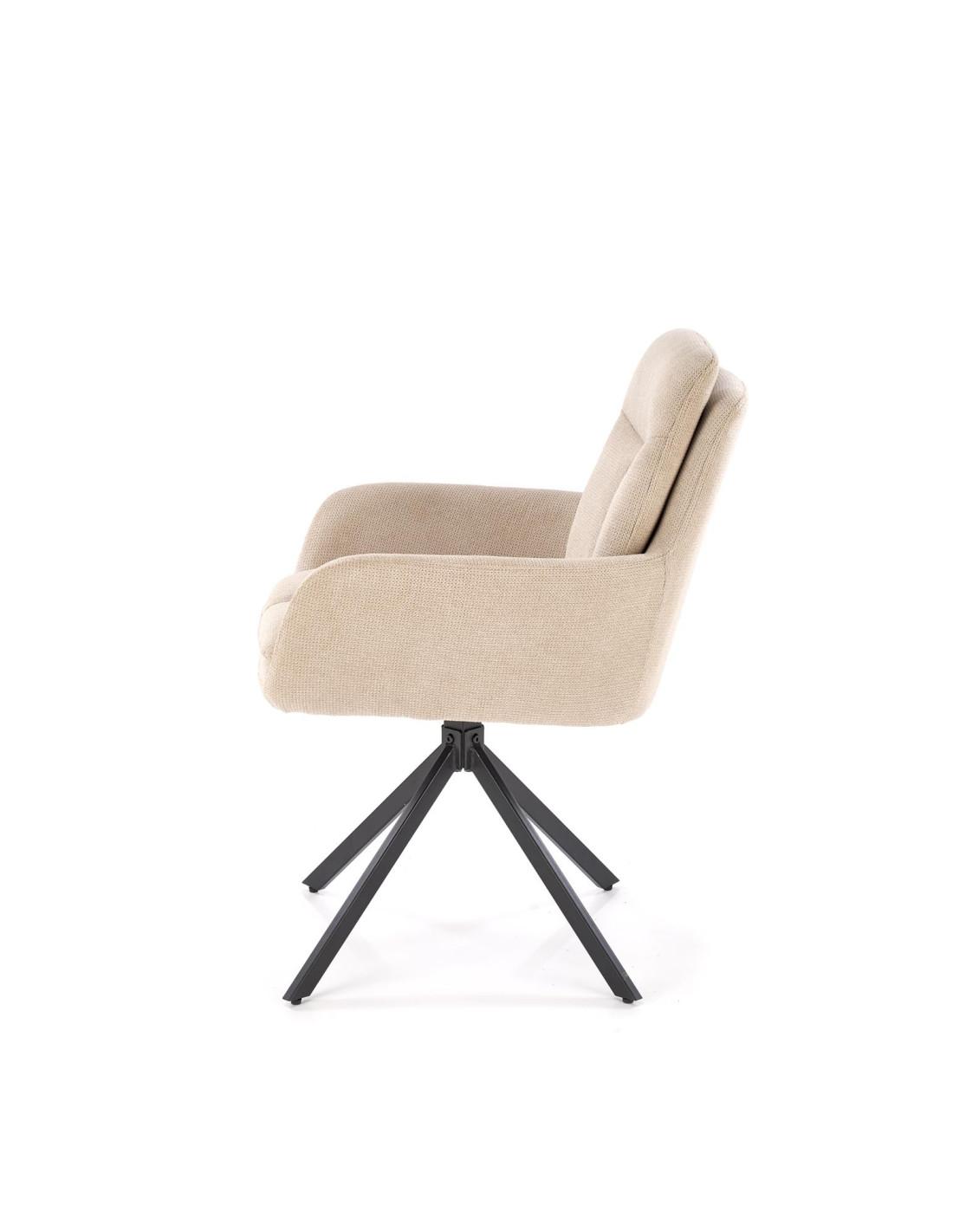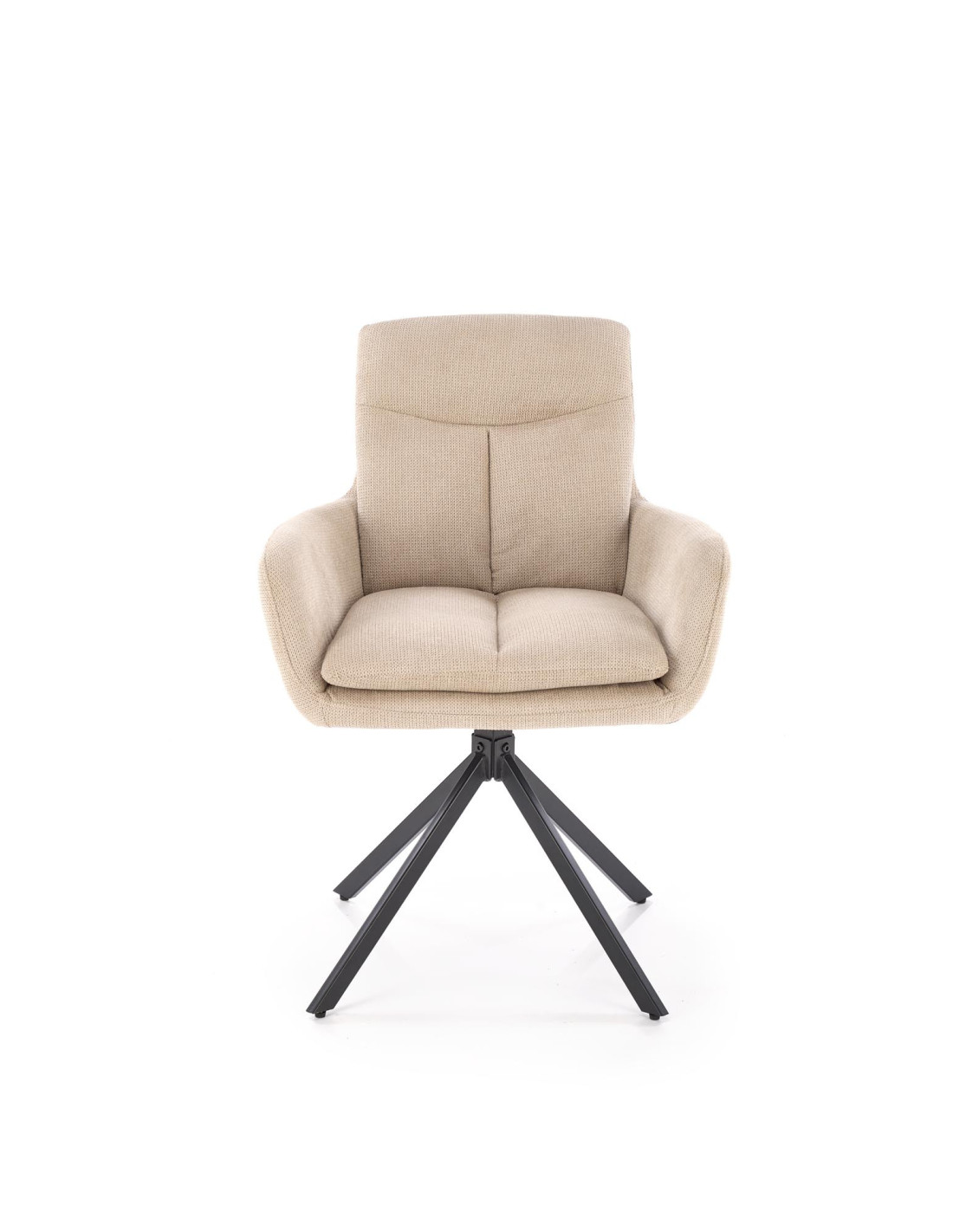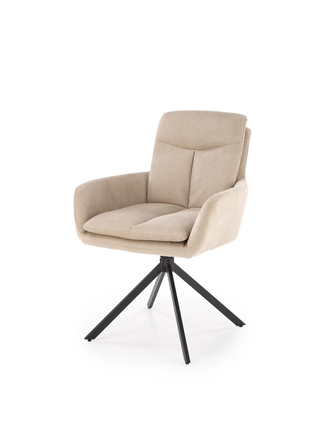 Podkreśl elegancję swojego wnętrza z krzesłem K536, które łączy nowoczesny design z praktycznymi rozwiązaniami. To beżowe, obrotowe krzesło wyróżnia się ergonomicznym kształtem i podłokietnikami, które zapewniają wygodę podczas długich chwil spędzonych przy biurku lub w jadalni. Jego metalowe, czarne nogi dodają stabilności i nowoczesnego charakteru.