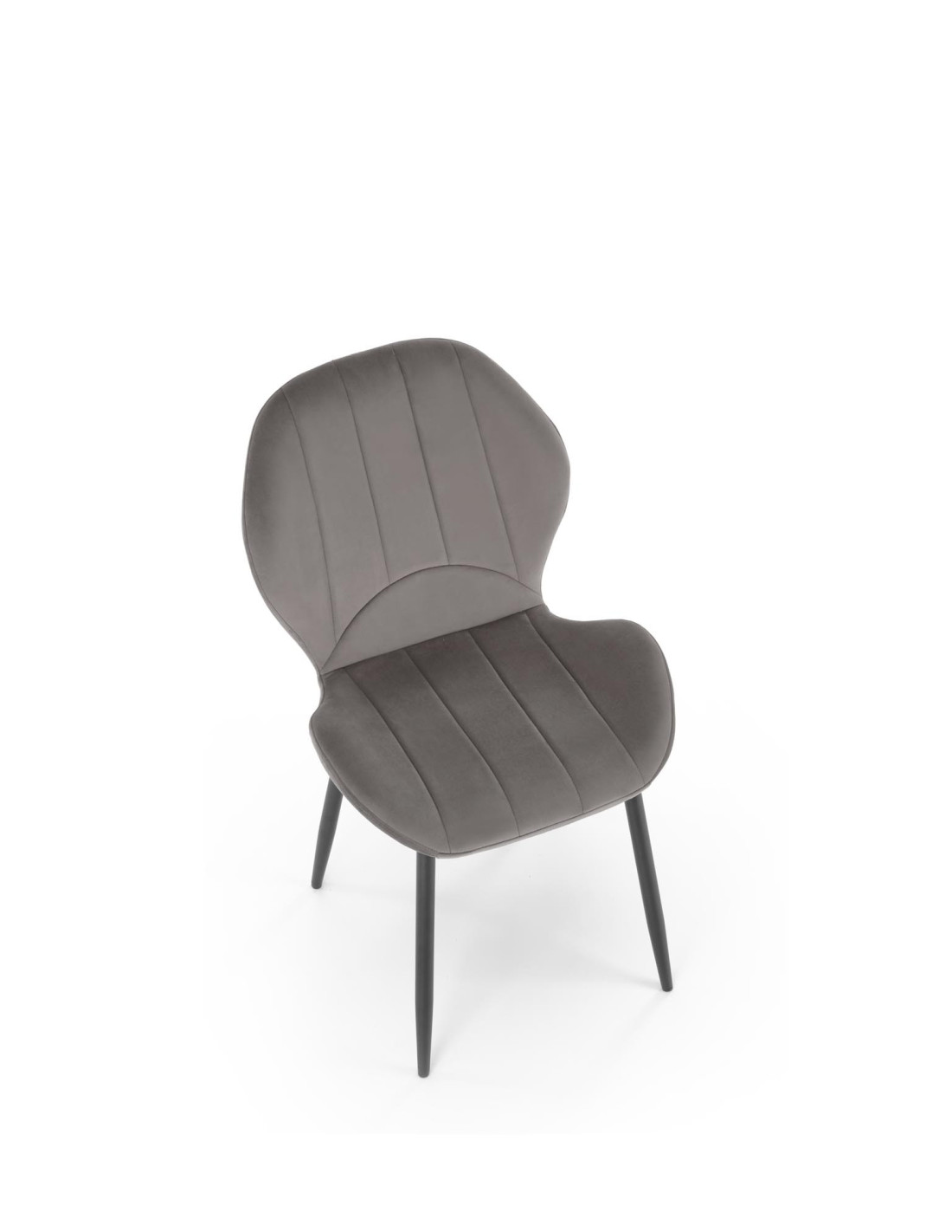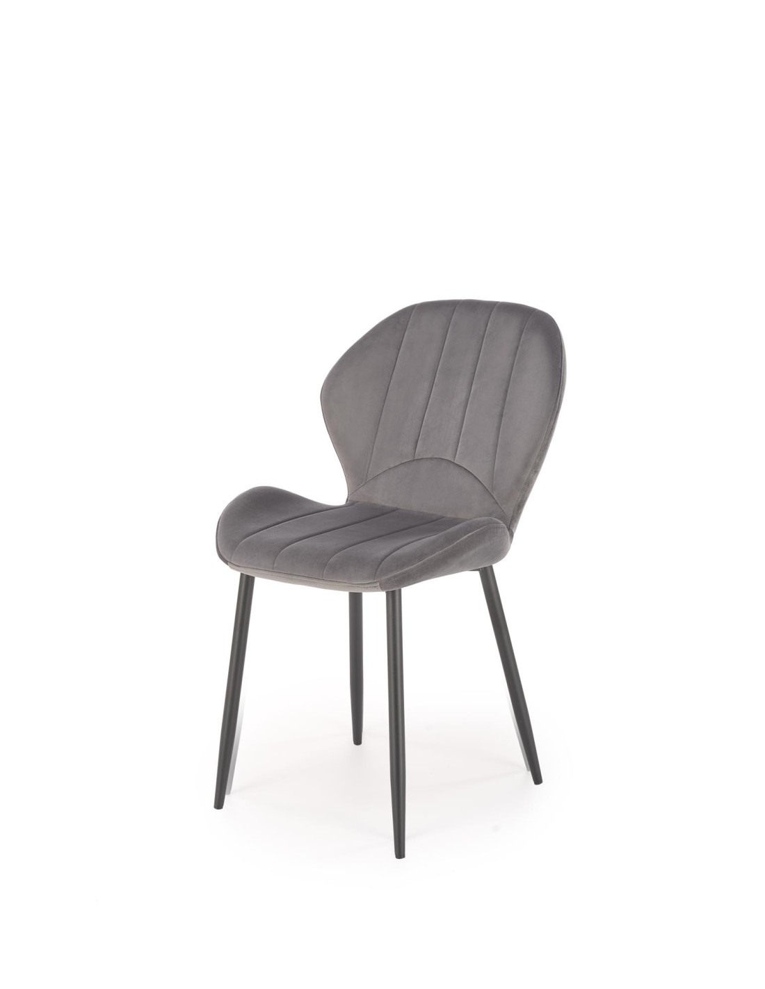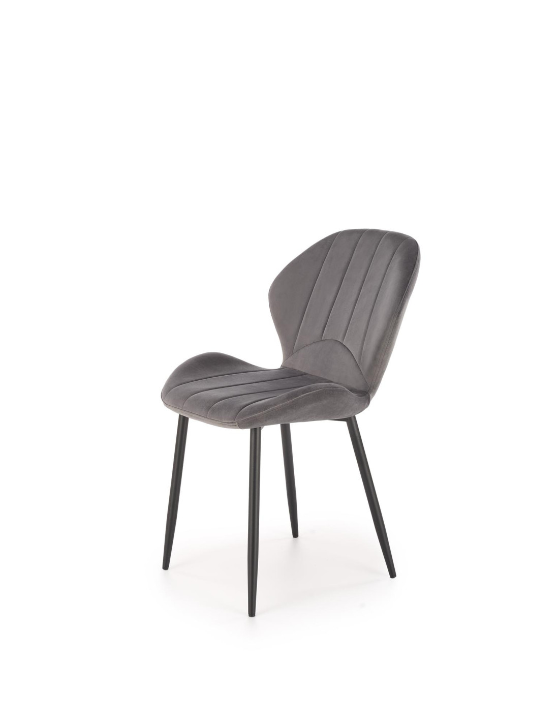 LEMO Krzesło Popielate Velvet w Pasy, Nogi Czarne Zwężane - Komfort i Styl