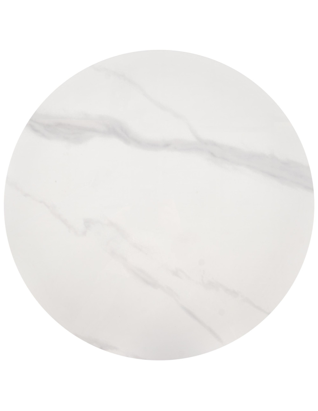 Stolik kawowy TALBI wykonany jest z spieku w kolorze białego marmuru oraz ze stali malowanej proszkowo.