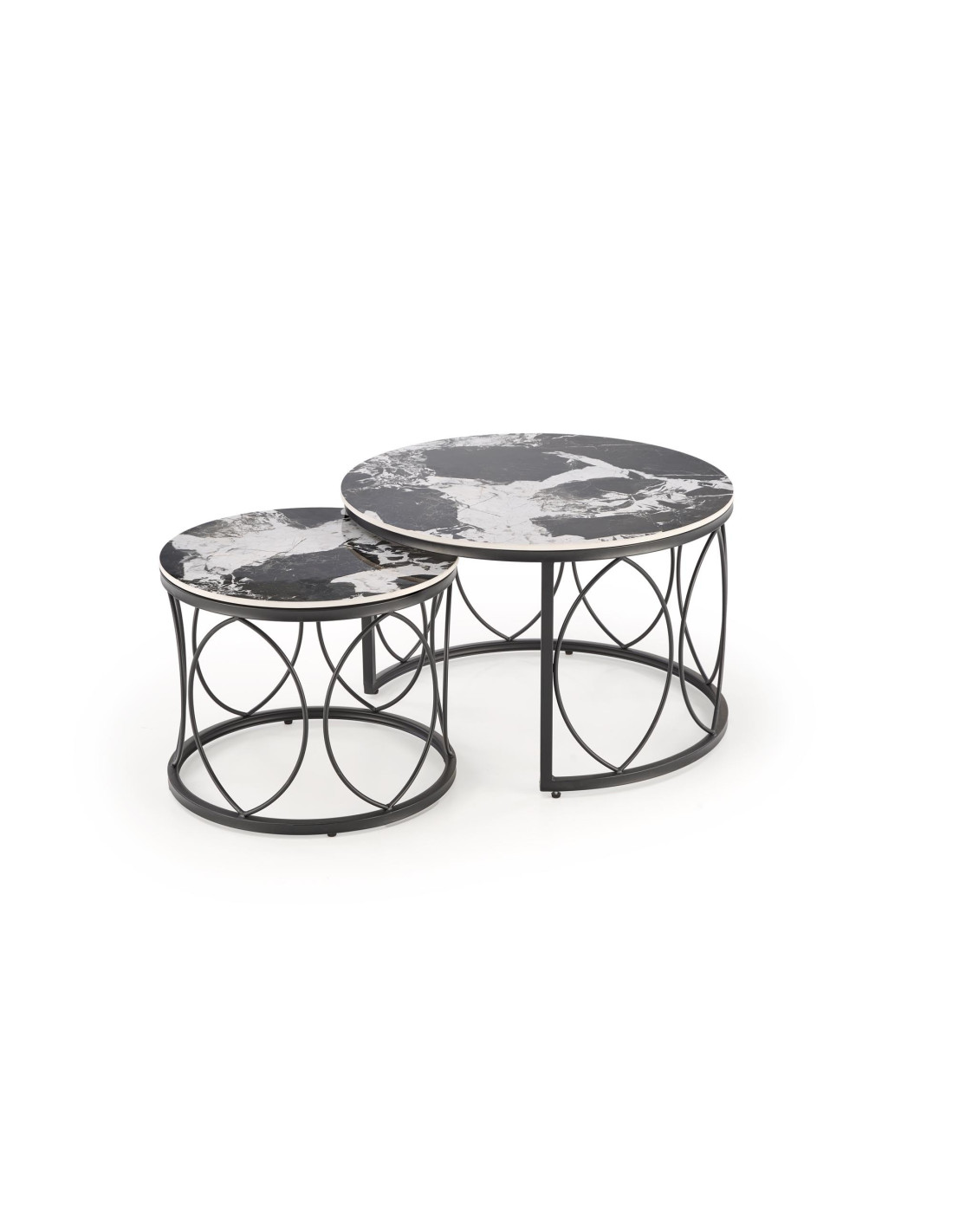 ALEXANDRA Zestaw 2 Ław Okrągłych Fi70/46 i Fi50/41 cm | Spiek Czarny Marmur