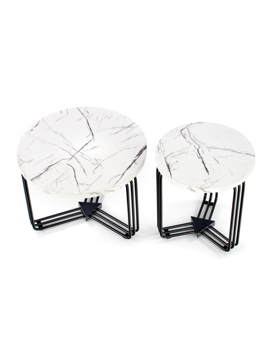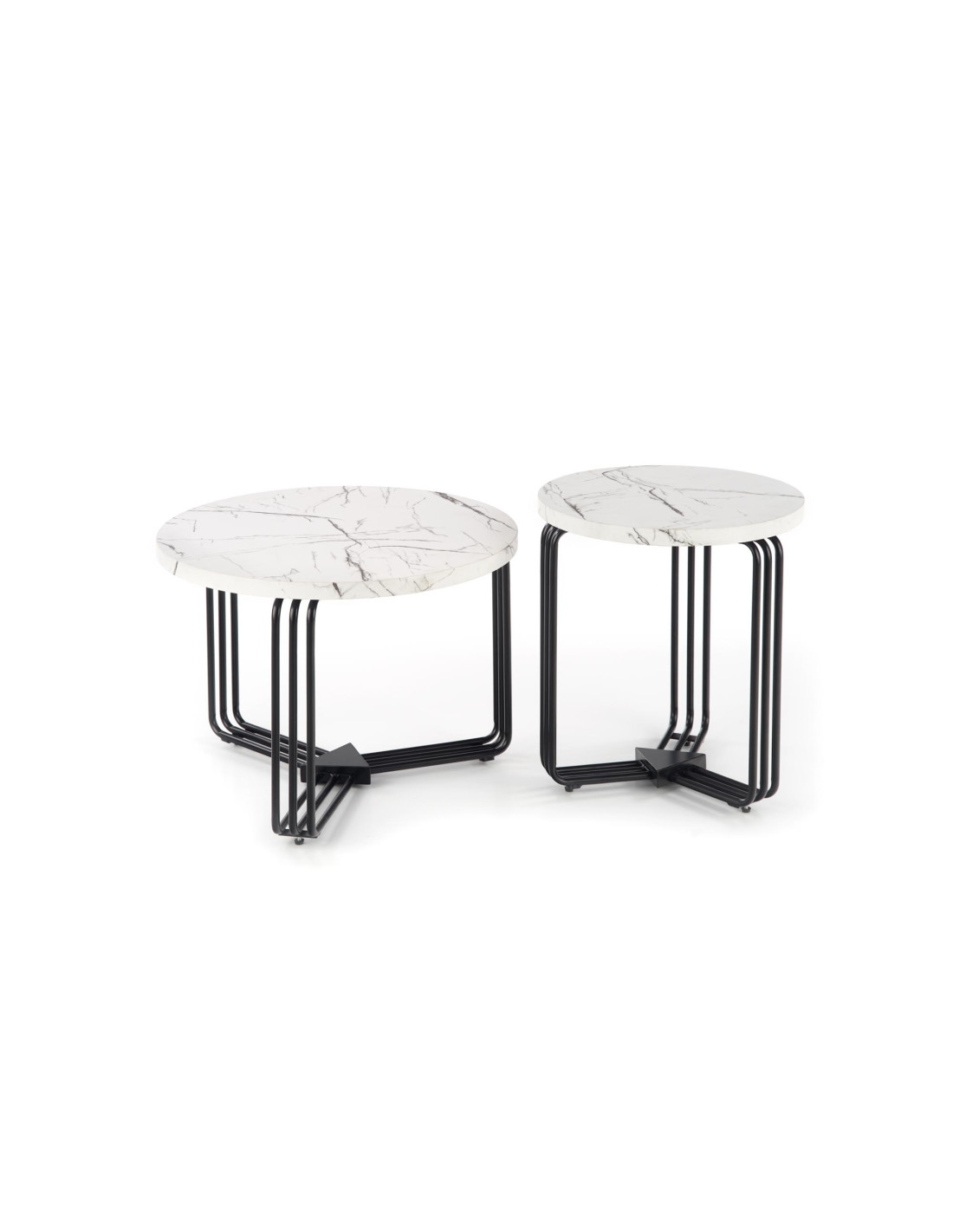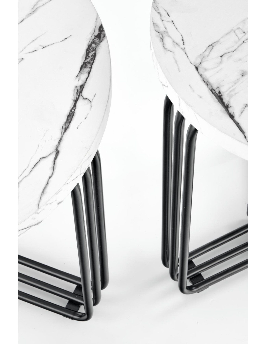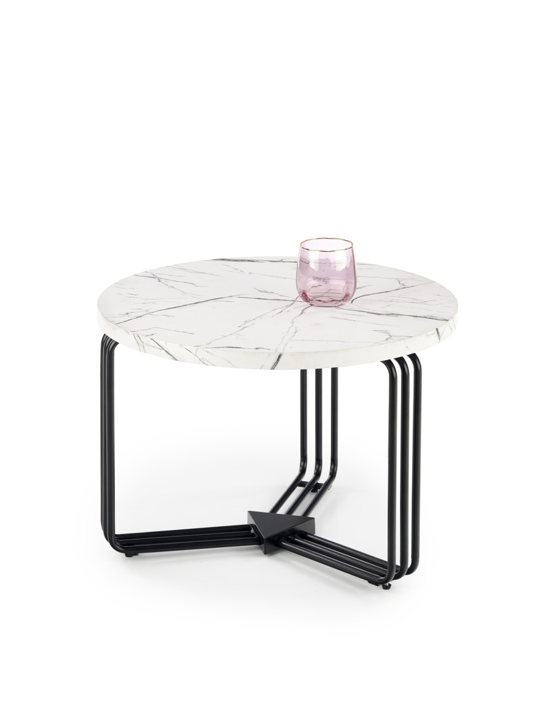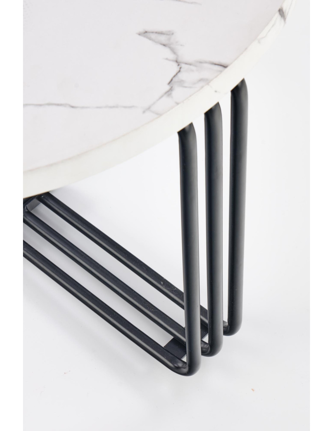 Okrągła Ława PUERTO M biały marmur, stelaż czarny