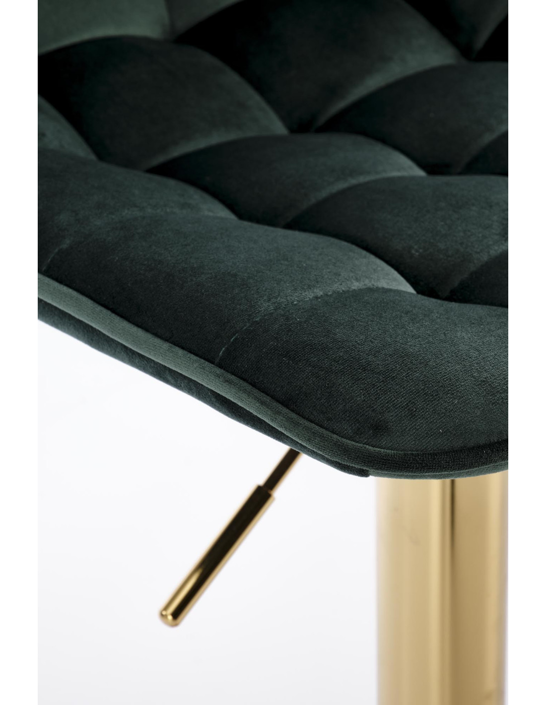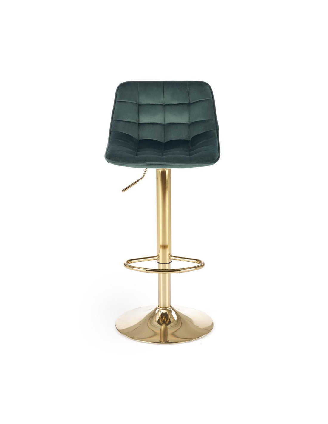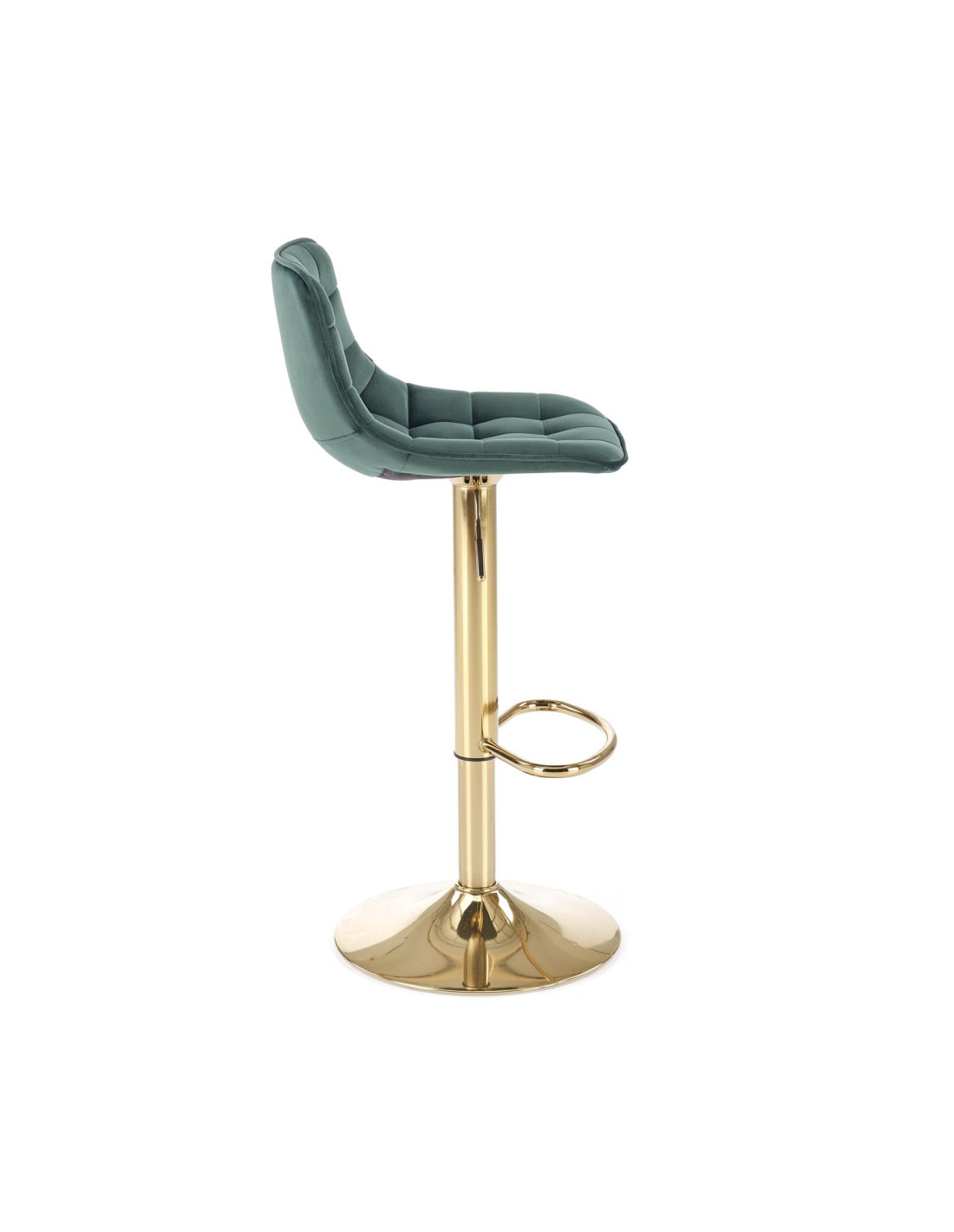 Zainwestuj w stylowe rozwiązanie, jakim jest hoker H120. Jego ciemn zielony kolor siedziska w połączeniu ze złotą podstawą tworzy wyjątkową kompozycję, która przyciąga wzrok i dodaje elegancji każdemu wnętrzu. Ergonomicznie zakrzywione siedzisko z pikowanym wzorem zapewnia nie tylko wygodę, ale i komfort użytkowania na długie godziny. Dzięki metalowej podstawie z regulacją wysokości, hoker doskonale sprawdzi się zarówno przy wyspie kuchennej, jak i w barze.