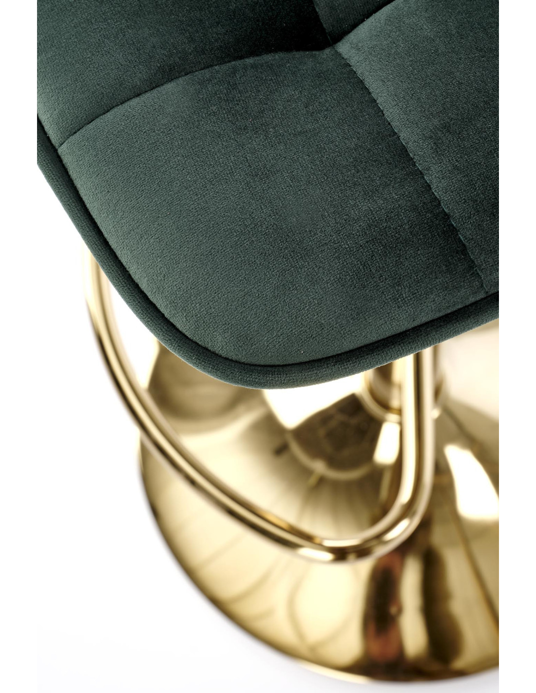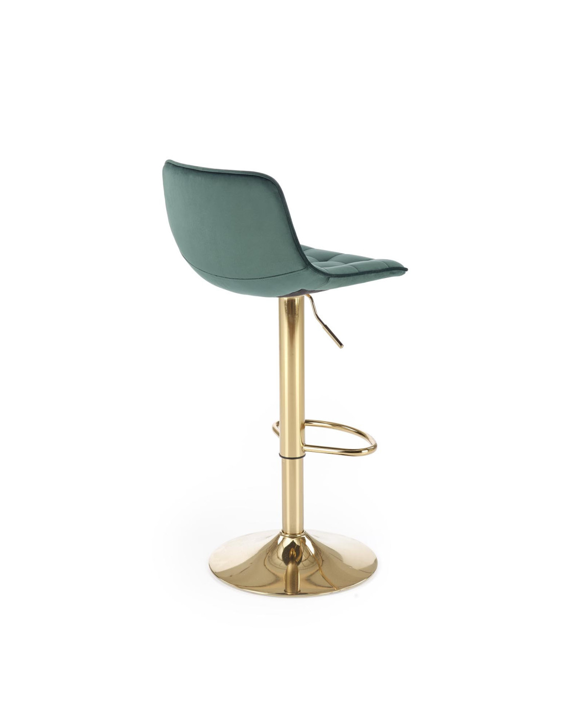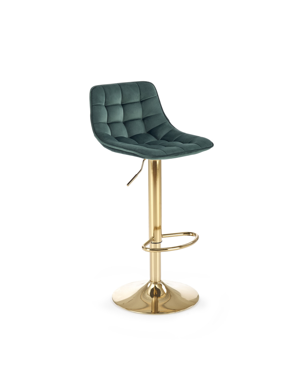 Zainwestuj w stylowe rozwiązanie, jakim jest hoker H120. Jego ciemn zielony kolor siedziska w połączeniu ze złotą podstawą tworzy wyjątkową kompozycję, która przyciąga wzrok i dodaje elegancji każdemu wnętrzu. Ergonomicznie zakrzywione siedzisko z pikowanym wzorem zapewnia nie tylko wygodę, ale i komfort użytkowania na długie godziny. Dzięki metalowej podstawie z regulacją wysokości, hoker doskonale sprawdzi się zarówno przy wyspie kuchennej, jak i w barze.