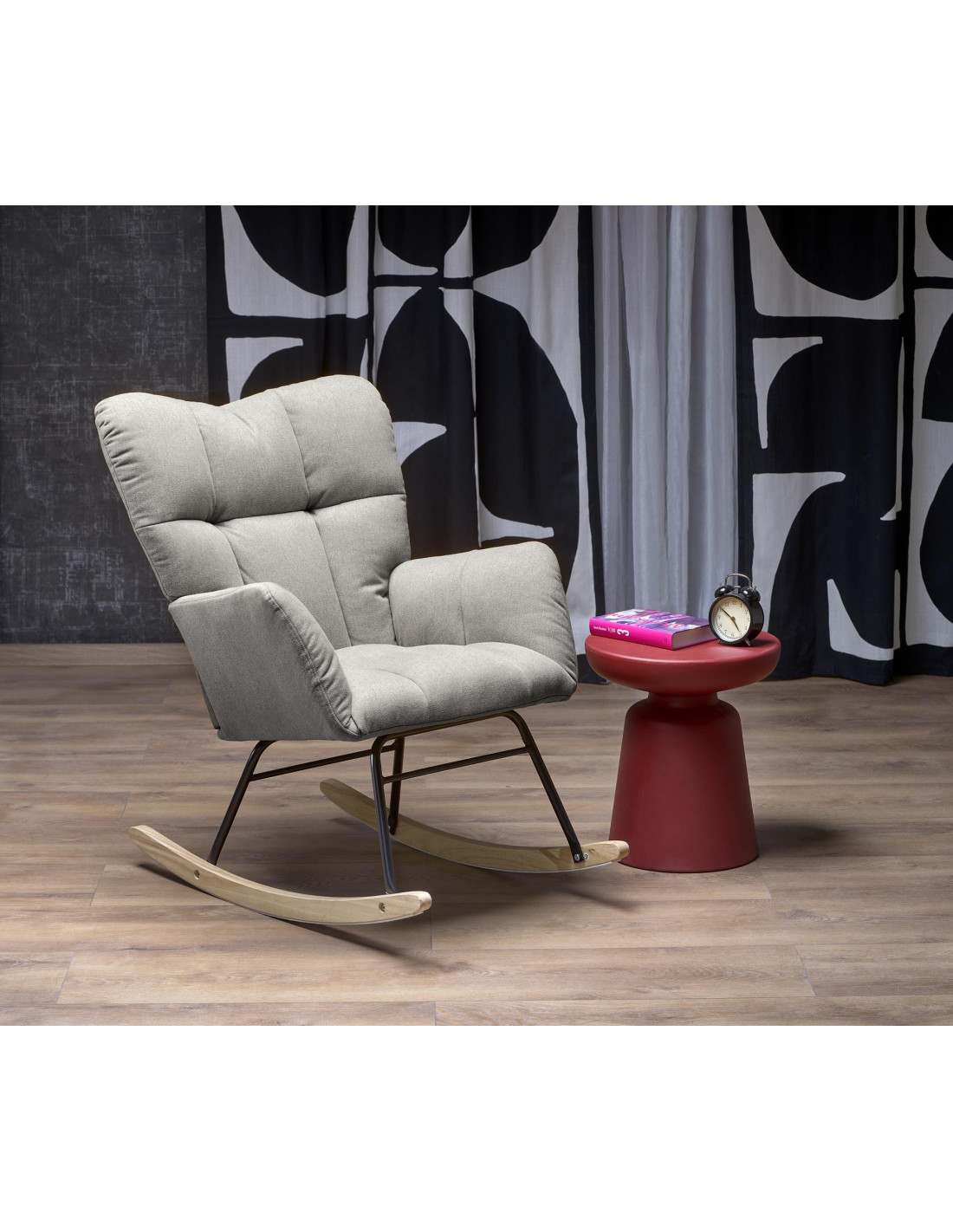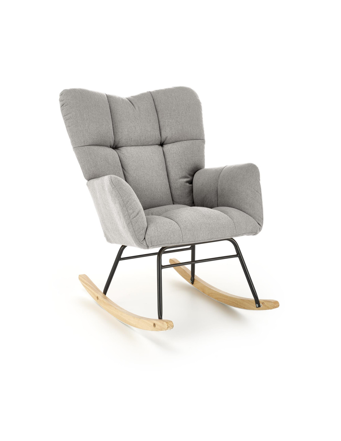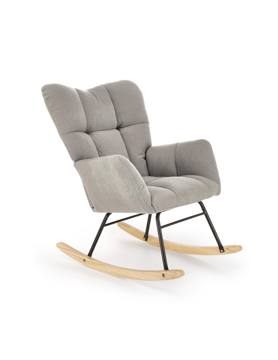 Wzbogać swoje wnętrze o fotel bujany VASCO, który łączy elegancję z funkcjonalnością. Jego popielata, pikowana tapicerka nadaje mu wyjątkowego charakteru, a szerokie, miękkie oparcie oraz podłokietniki zapewniają komfort podczas relaksu. Fotel bujany wyróżnia się prostokątnym siedziskiem z zaokrąglonymi rogami, co dodaje mu nowoczesnego stylu.
