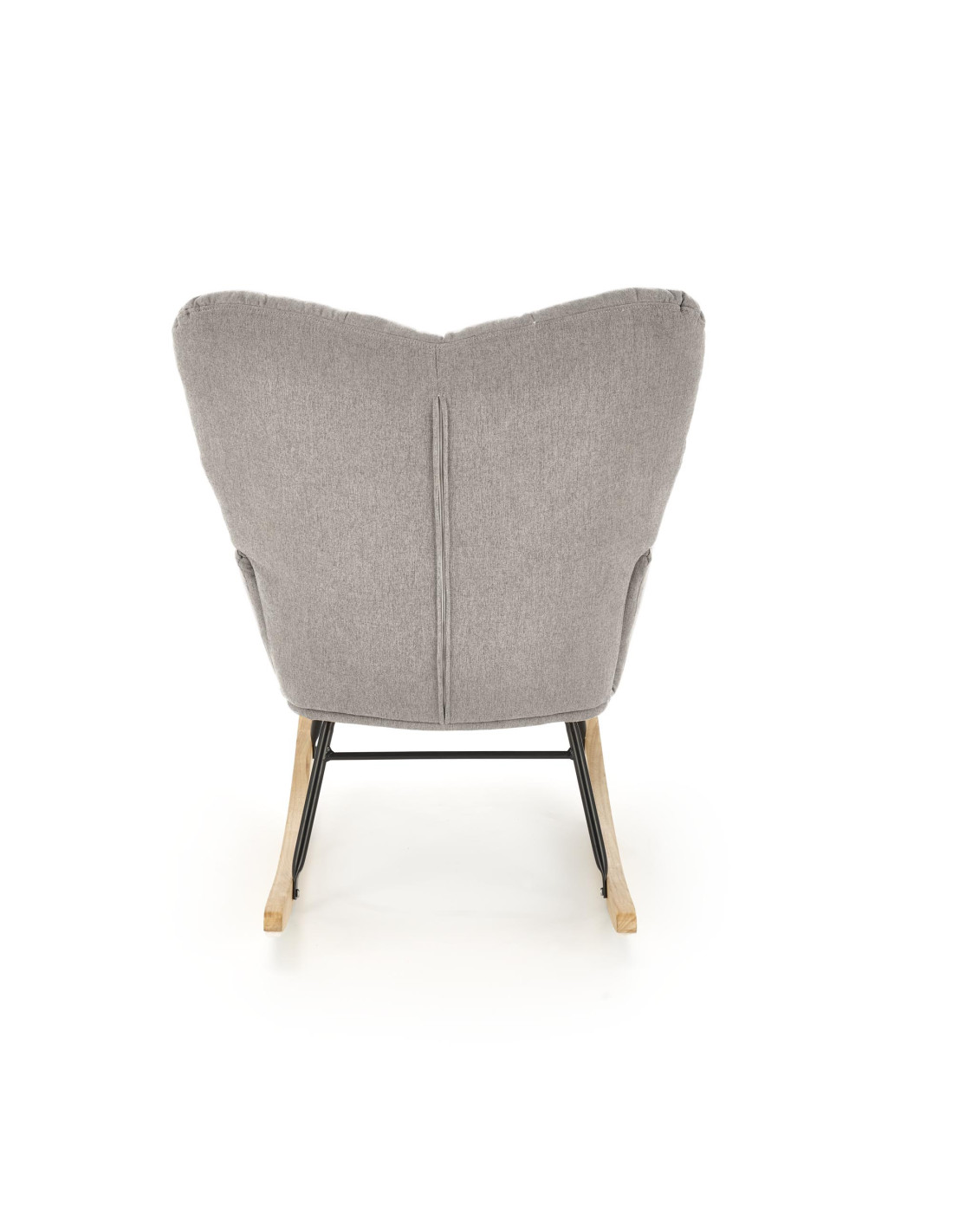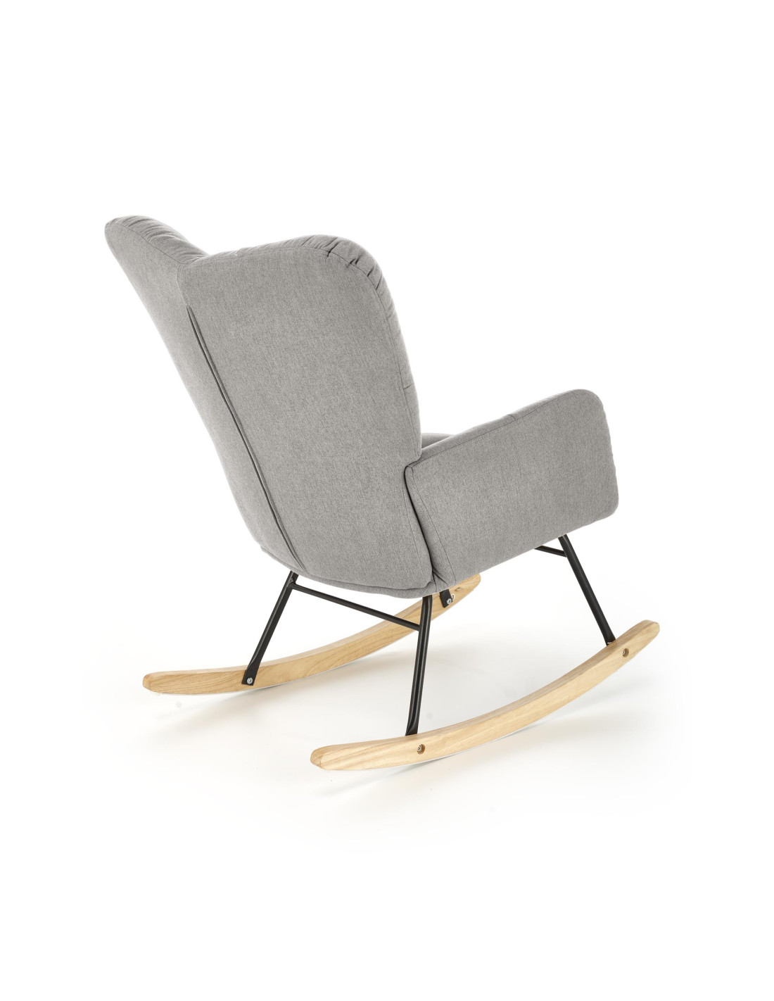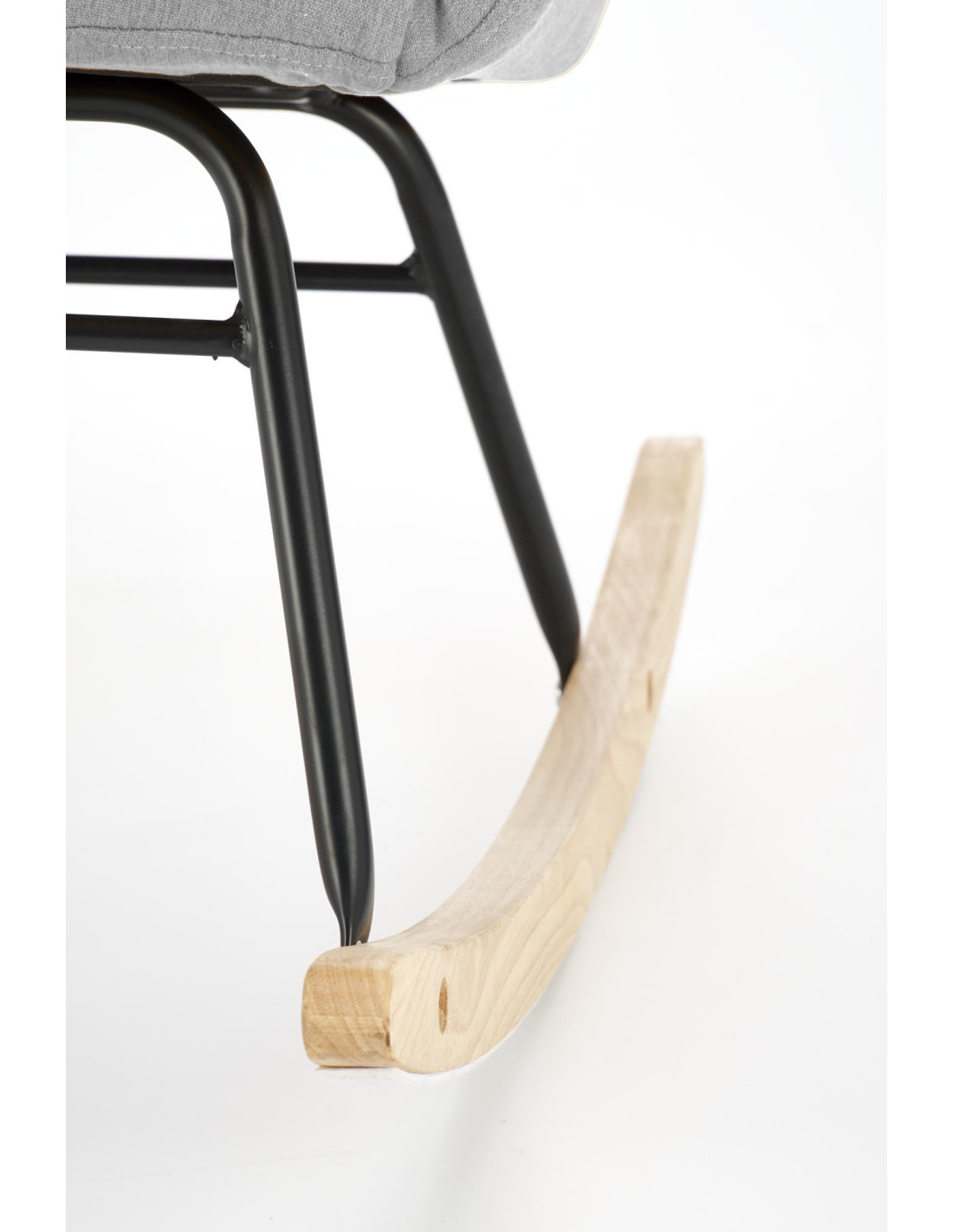 Stworzony z myślą o osobach ceniących sobie wygodę, fotel jest osadzony na solidnej, czarnej metalowej ramie, która harmonijnie łączy się z drewnianymi płozami w naturalnym kolorze. Idealnie wpisuje się w skandynawskie oraz nowoczesne aranżacje wnętrz, tworząc przytulną atmosferę w każdym pomieszczeniu.
