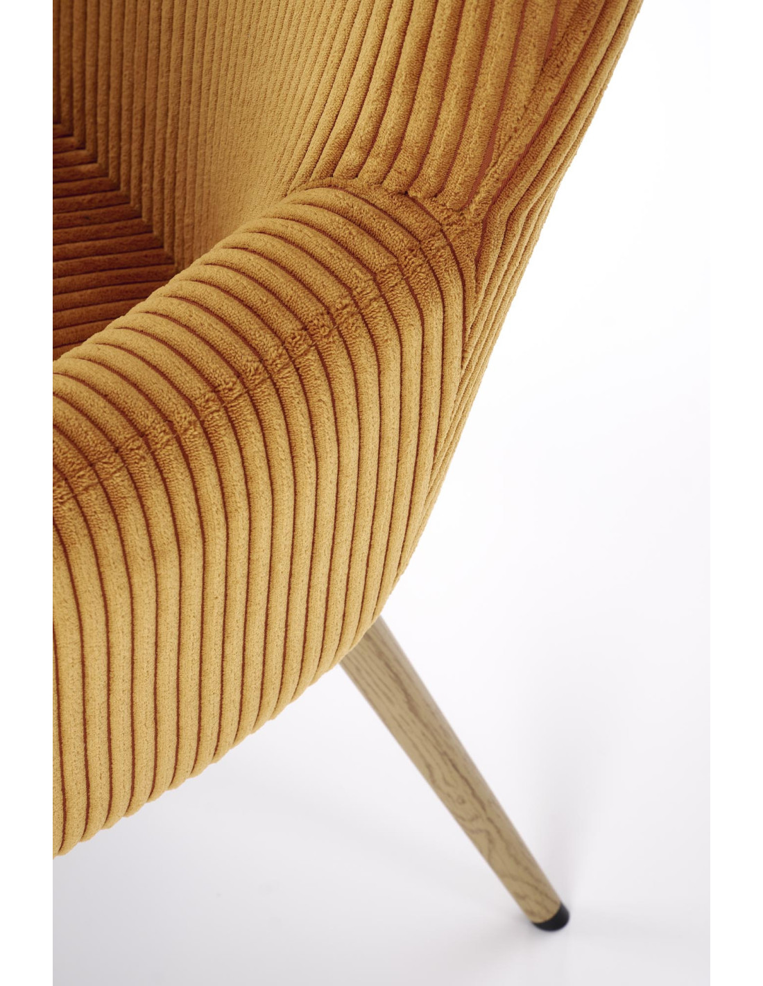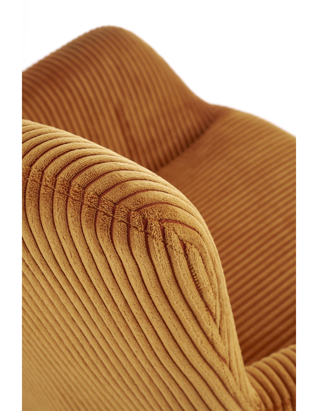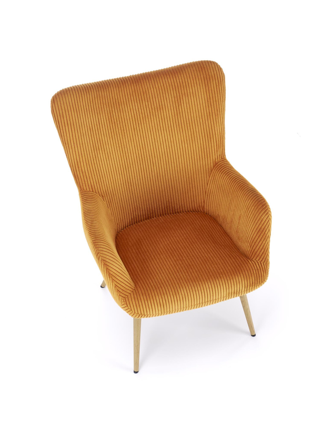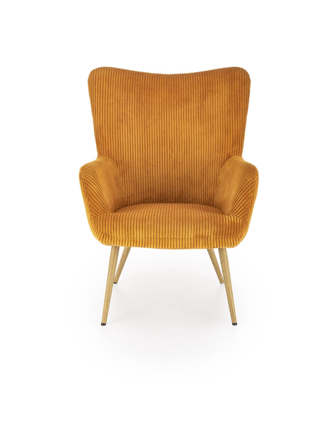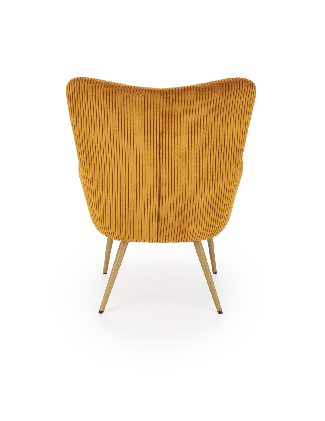 Dodaj piękny akcent do swojego wnętrza z fotelem wypoczynkowym AMARO! Jego musztardowy kolor oraz sztruksowy materiał wprowadzają do przestrzeni elegancję i odrobinę retro stylu. Zaokrąglone boki i oparcie dopełniają harmonijny wygląd, a smukłe, drewniane nogi ustawione pod kątem zapewniają nie tylko estetykę, ale również stabilność. Każdy moment spędzony na tym fotelu to prawdziwa przyjemność.