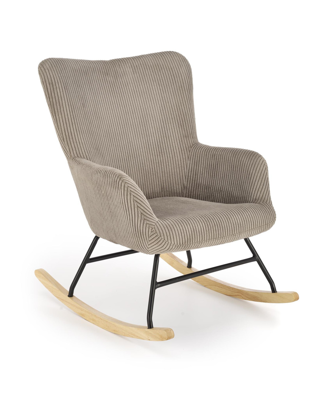 Fotel BELMIRO wykonany jest z tkaniny sztruksowej, posiada stalowe nogi malowane proszkowo oraz drewniane płozy.