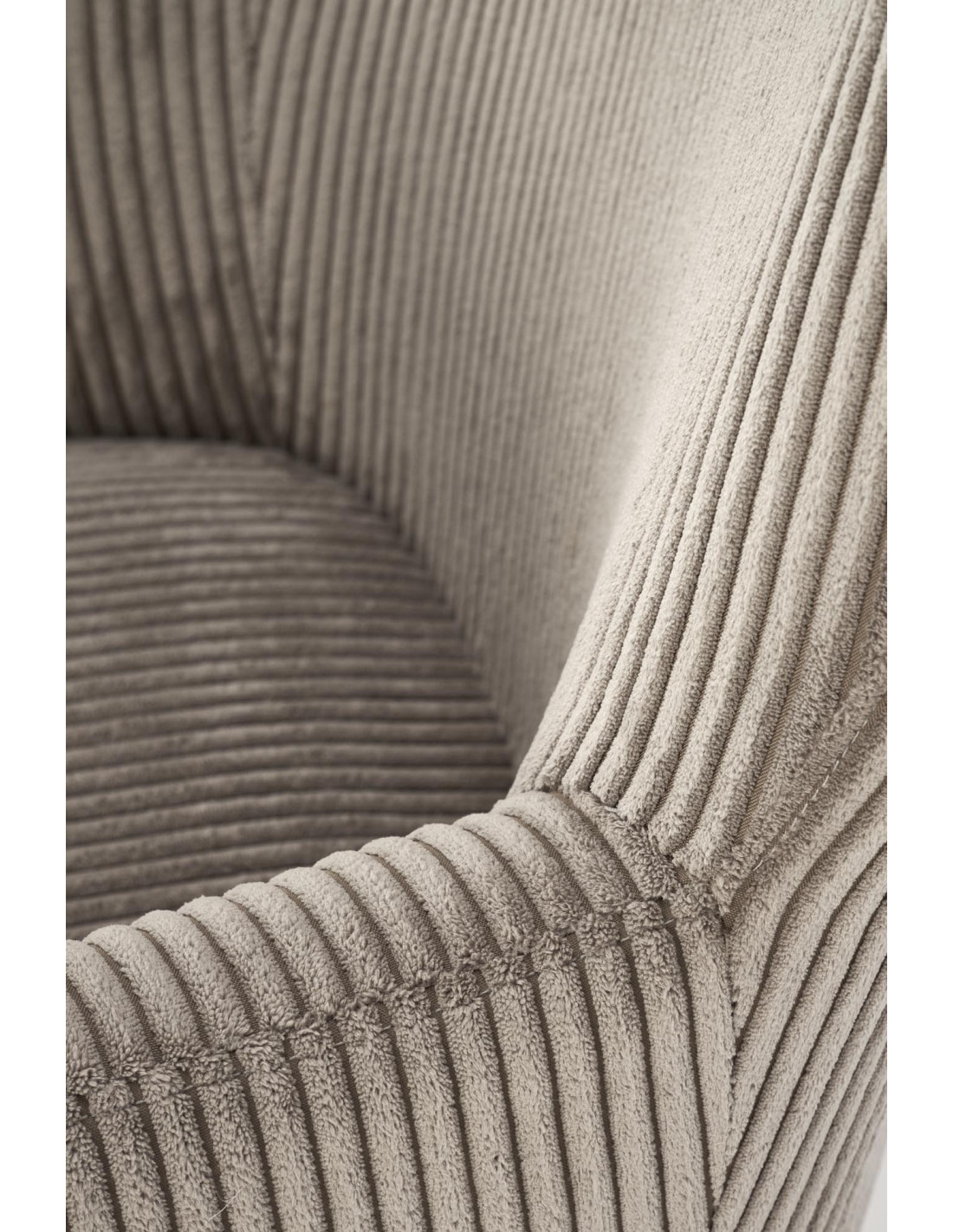 - ✅ Miękka tapicerka: Fotel wykonany jest z przyjemnej w dotyku tkaniny sztruksowej, co zapewnia komfort podczas siedzenia.