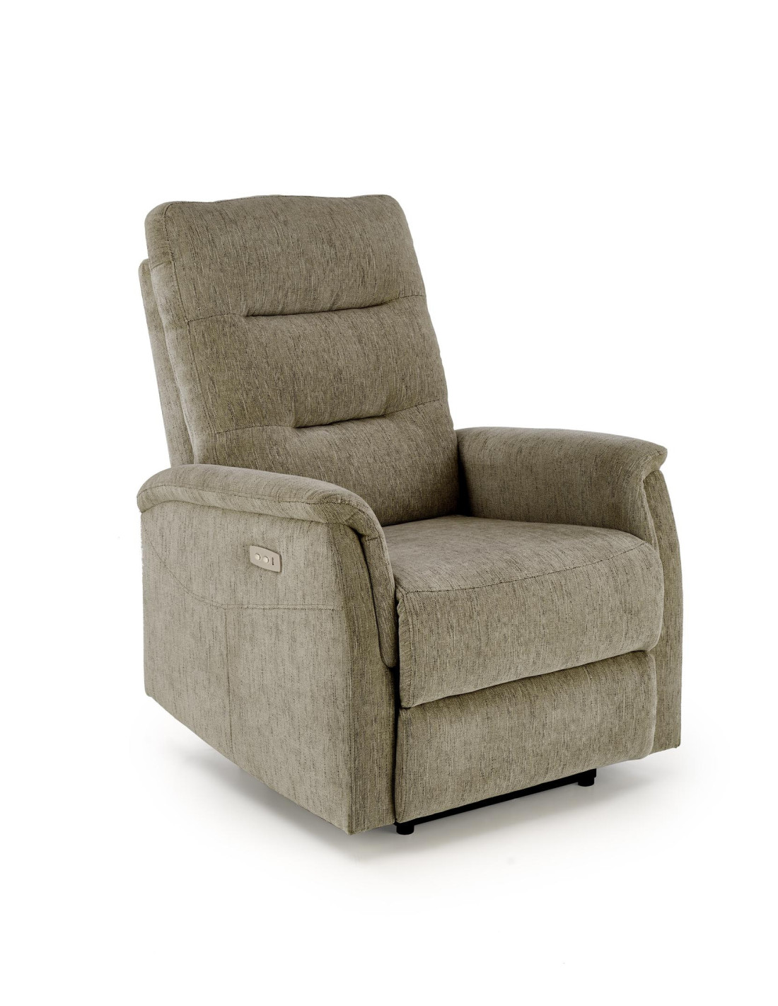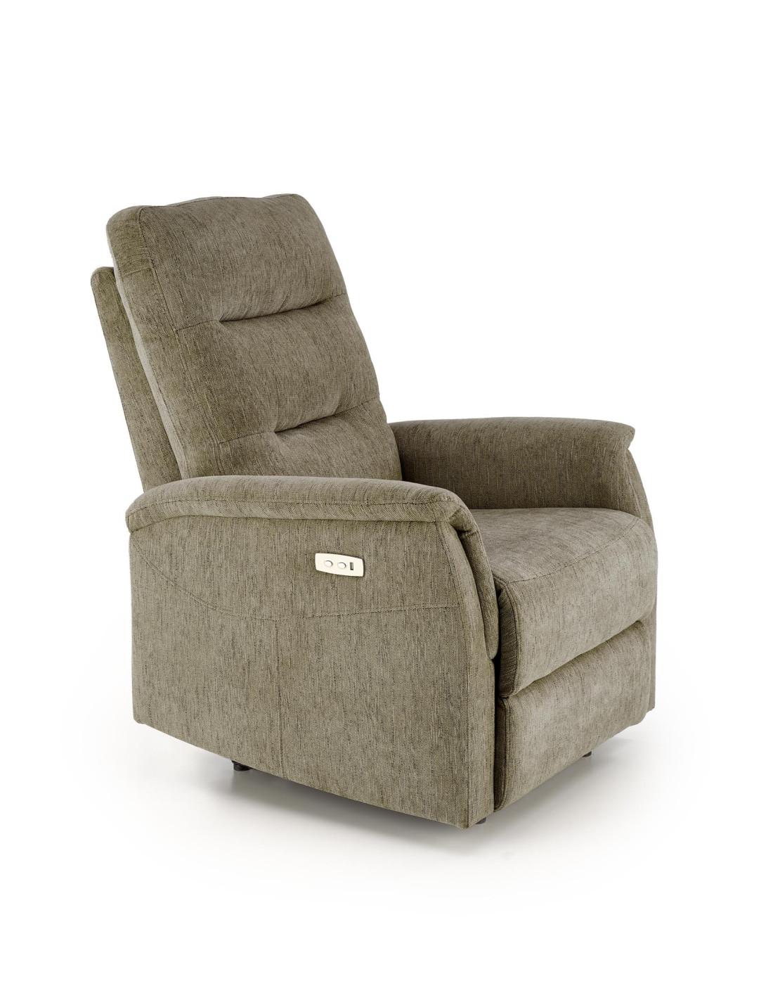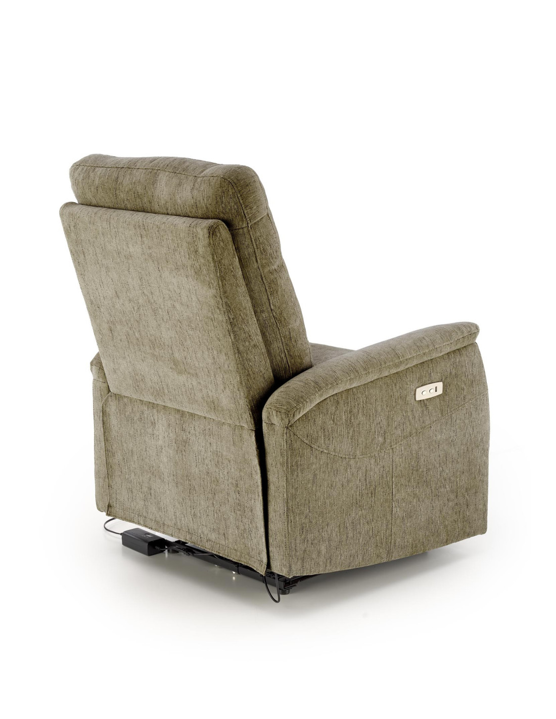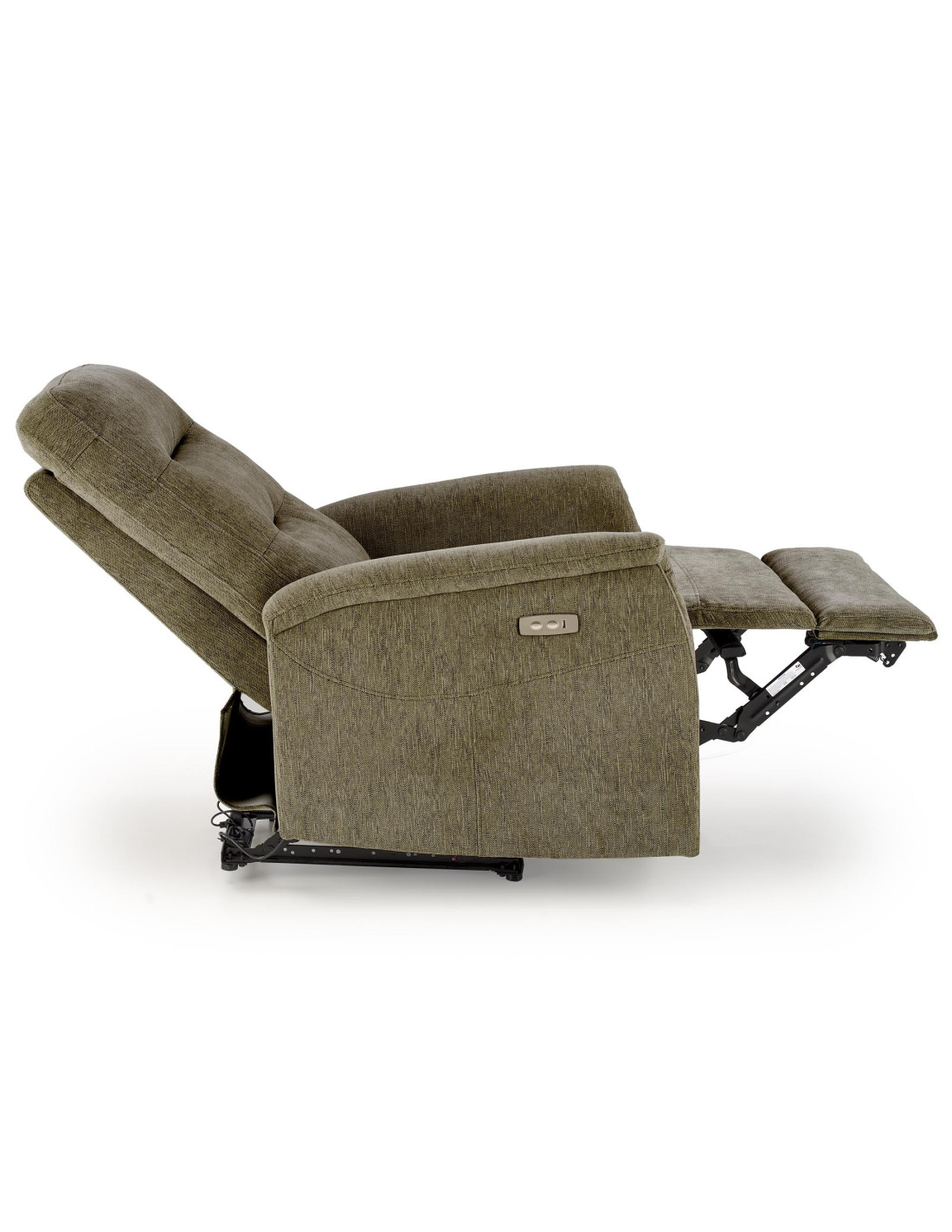 JAMAL Fotel Wypoczynkowy Oliwkowy – Elektrycznie Rozkładany z Portem USB