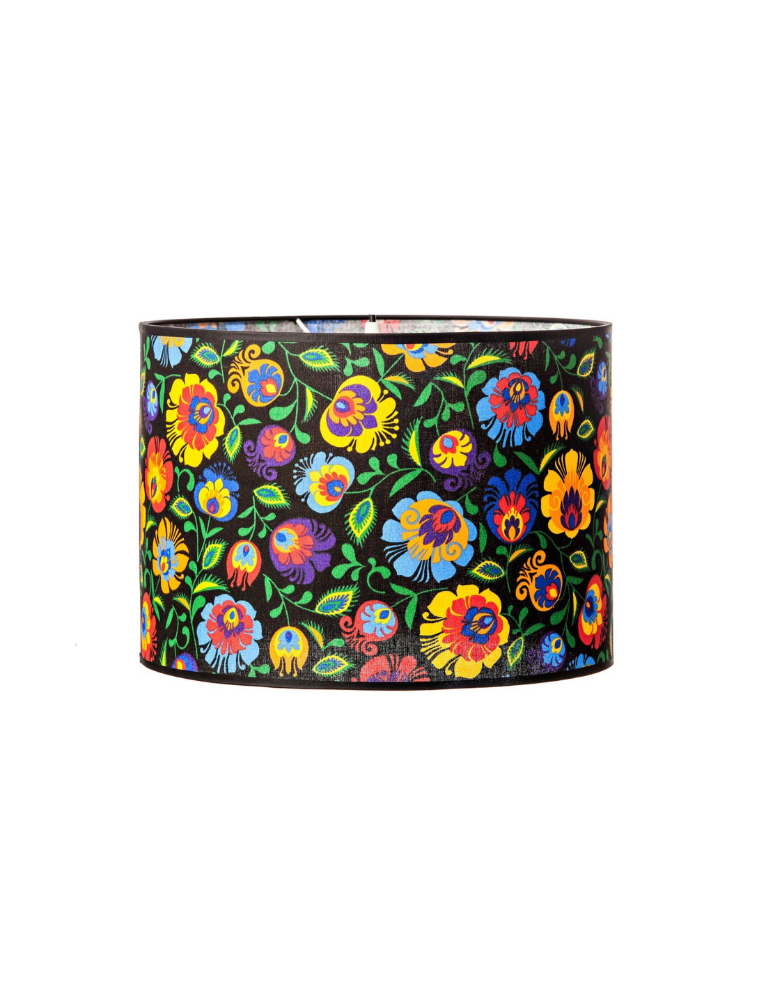 Abażur owal FOLK CZARNY dedykujmy miłośnikom wnętrz w stylu folkowym. Wzory i motywy ludowe,którymi pokryty jest materiał to nie tylko obłędna ilość kolorów,barw ale też finezyjne kształty. Abażur jest ręcznie szyty i podklejony transparentną folią pcv, dzięki czemu będzie służył nam dłużej.Przeznaczony jest do lamp wiszących i stojących.