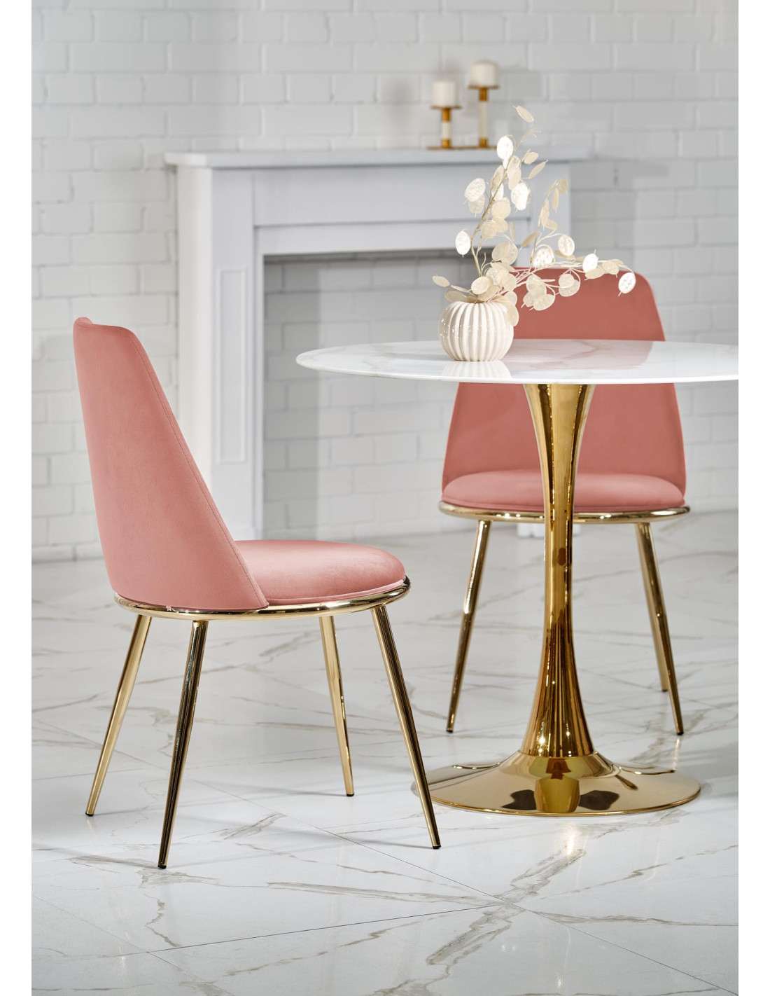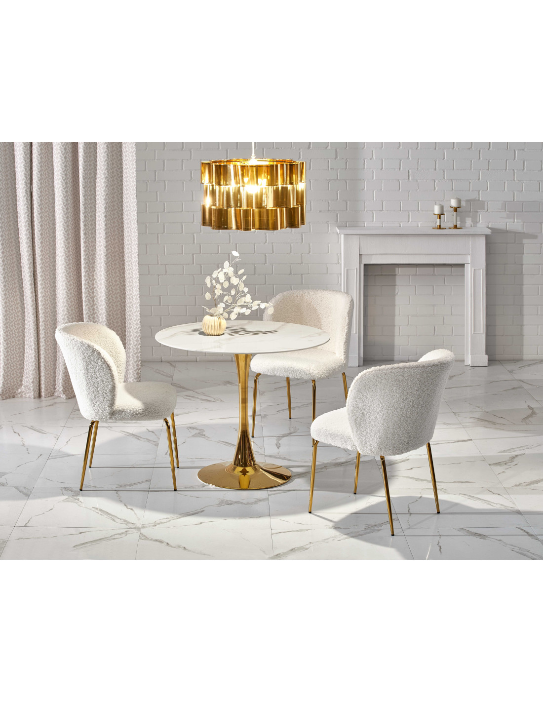 CASEMIRO stół blat - biały marmur, noga - złoty (2p 1szt)
