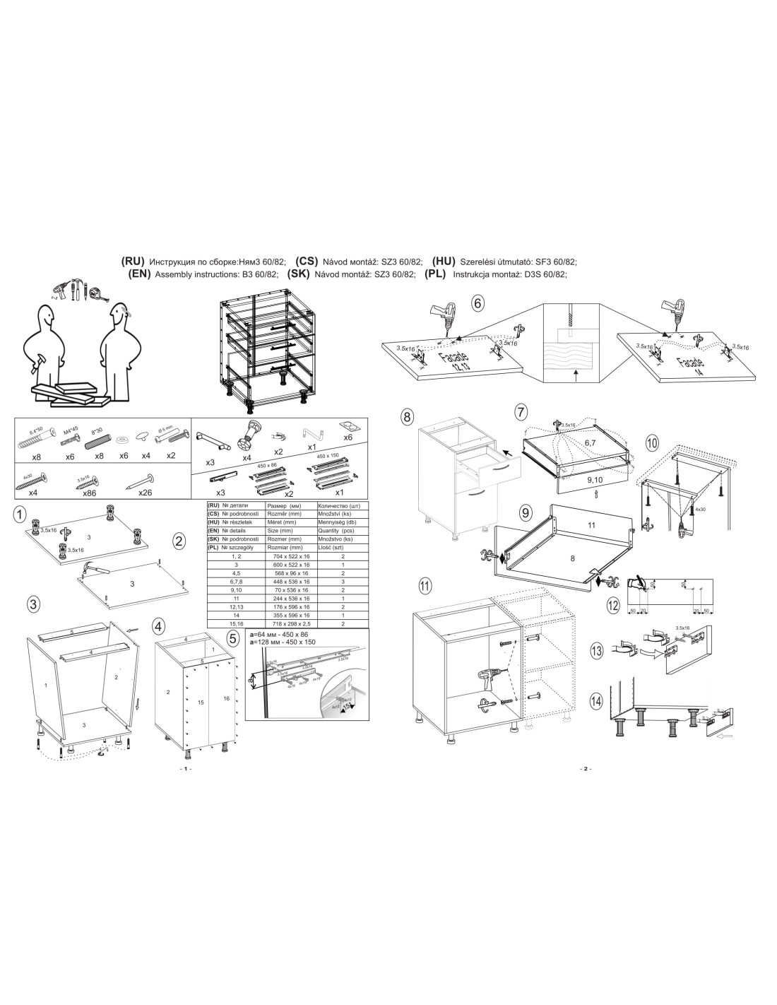 VENTO D3S-60/82 szafka dolna z szufladami, mechanizm Hettich front: jasny popiel (1p 1szt)