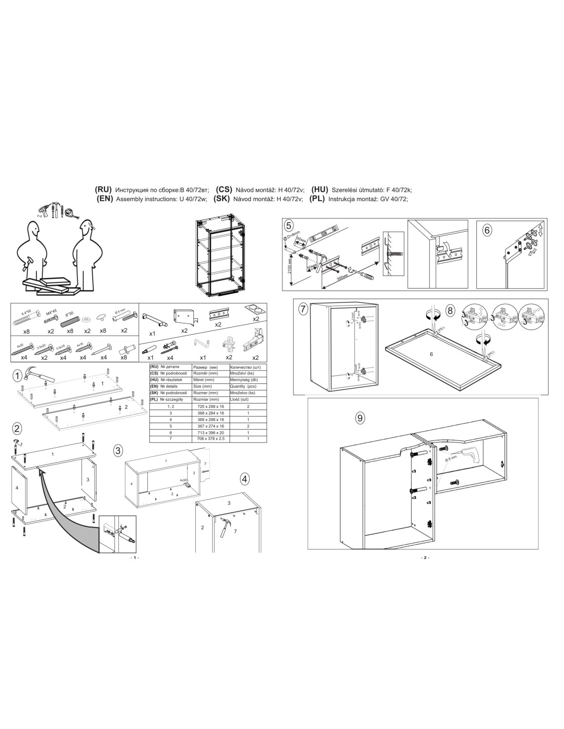 | Numer paczki | Długość | Szerokość | Wysokość | Waga | EAN |