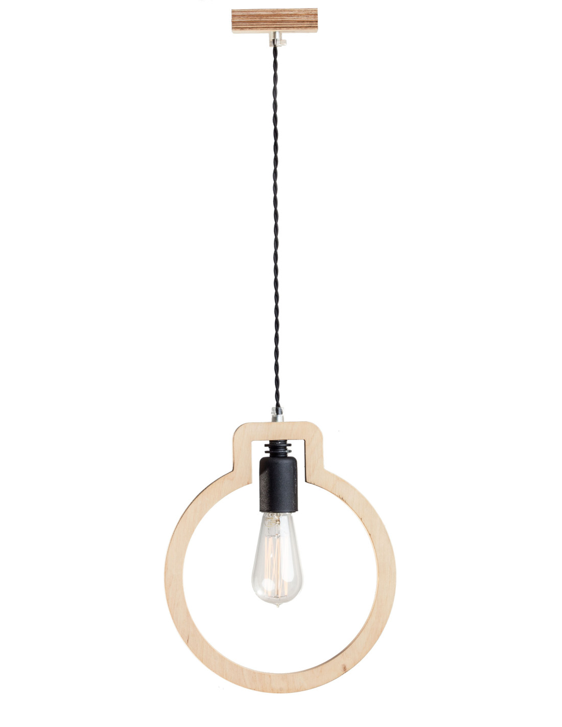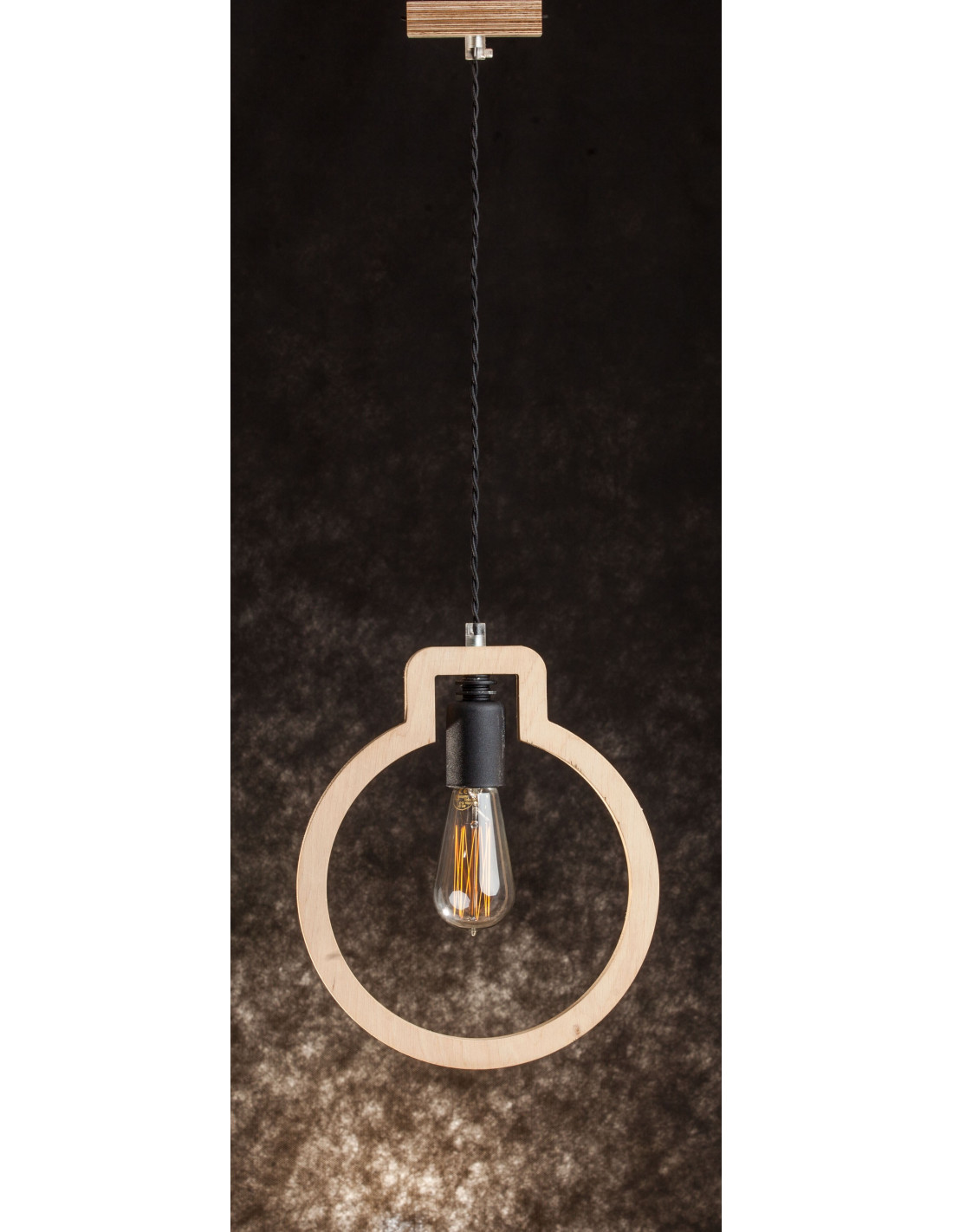 Lampa Light Bulb kształtem przypominająca zarys żarówki wykonana jest ze sklejki o grubości 1,7 cm, którą przetarliśmy woskiem naturalnym by wydobyć niepowtarzalny urok tego surowca. Dopełnieniem jej są elementy metalowe wyglądające jakby były nie domalowane w kolorze czarnym. Ekspresji dodaje też czarny kabel podwójnie skręcony w czarnym bawełnianym oplocie.
