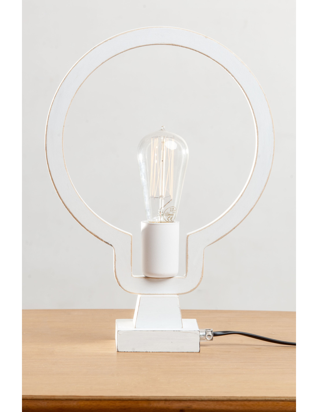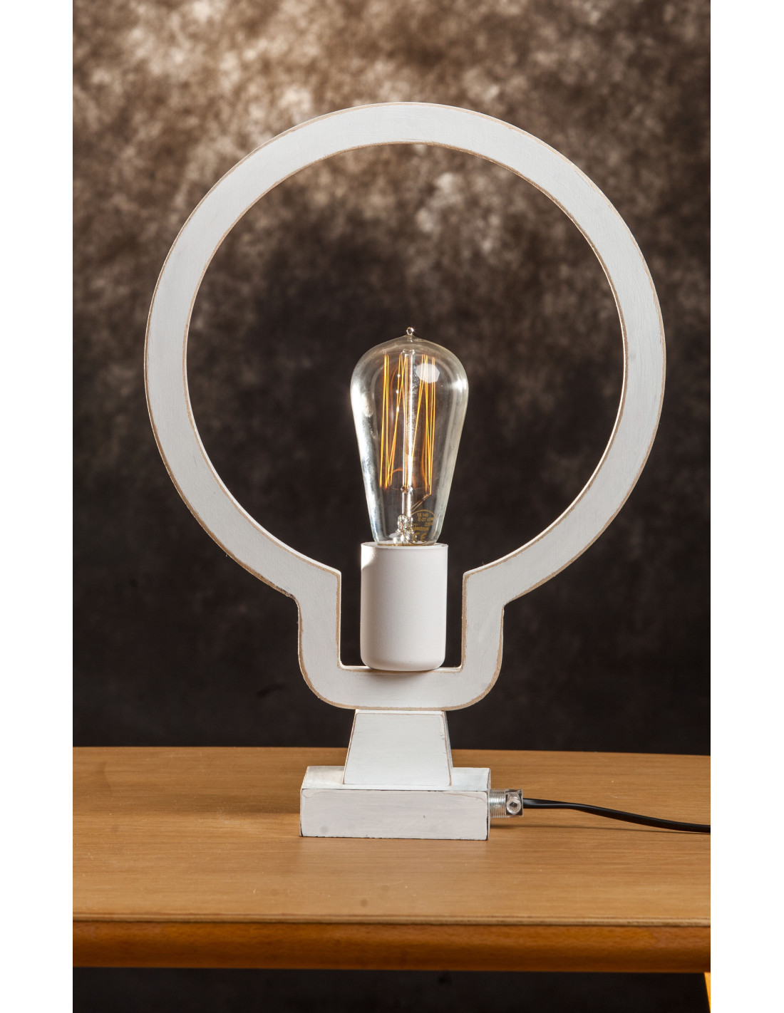 Lampa stołowa LIGHT BULB w kolorze białym wyróżnia się z pośród innych lamp nie tylko kształtem, ale i surowcem z jakiego została wyprodukowana. Do produkcji jej użyliśmy sklejki 1,7 cm, oprawka została obudowana osłonką metalową i pomalowana farbą białą strukturalną.