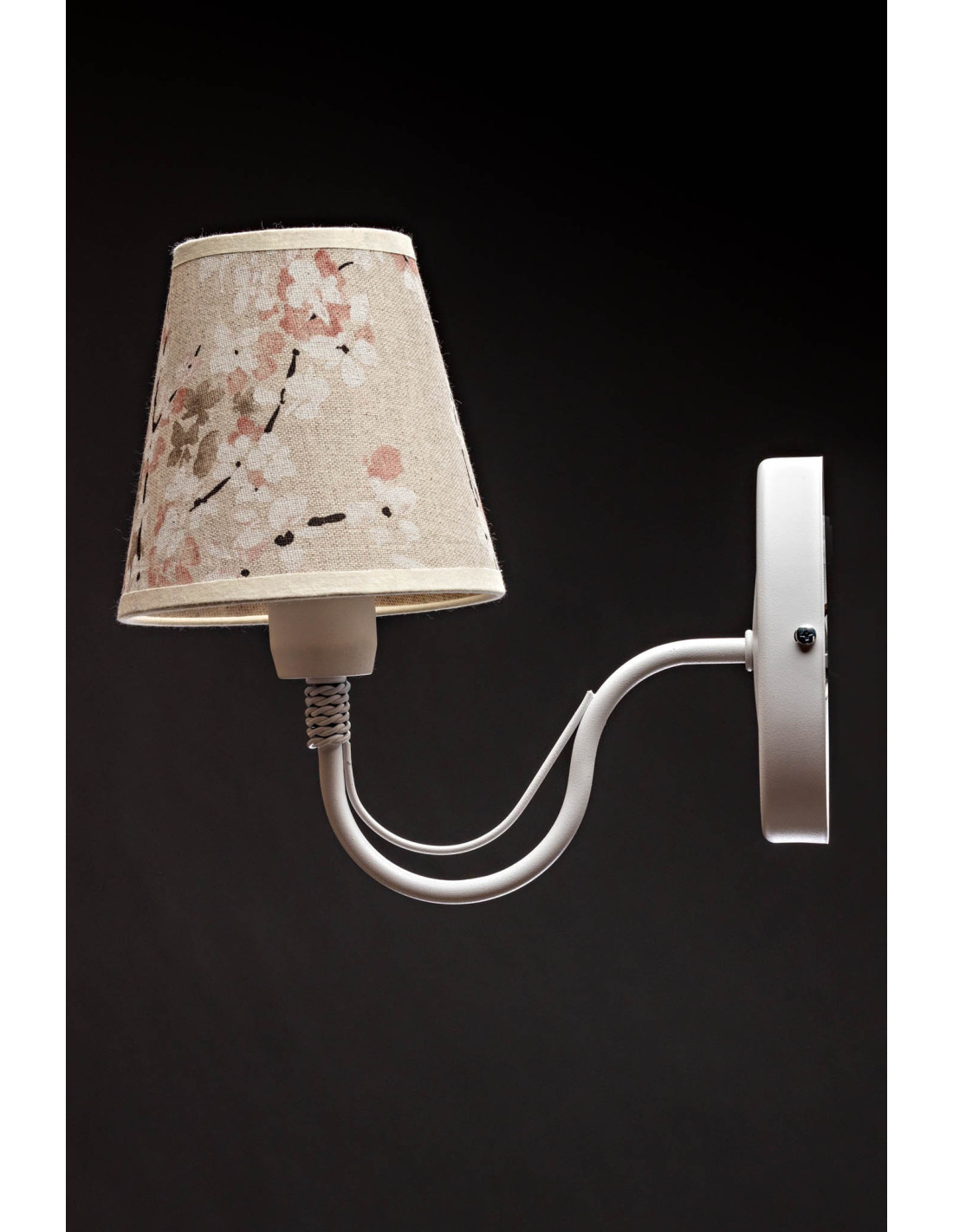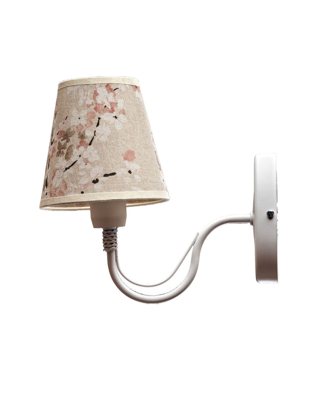 Kinkiet prowansalski KATRIN biały z abażurem z motywem kwiatów wiśni jest lampą unikatową, pod względem konstrukcji jak i designu.W kinkiecie zastosowaliśmy oprawkę E27 co umożliwia w epoce żarówek ledowych większą moc świecenia. Abażury do tej lampy są szyte ręcznie i materiał został podklejony transparentnym PCV.