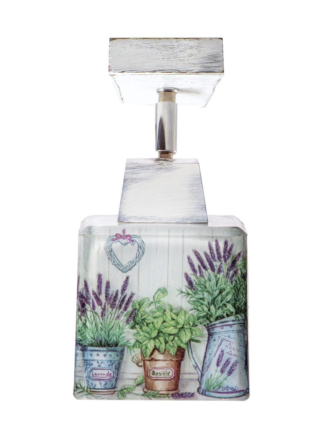Przepiękny plafon prowansalski. Grube szkło matowane od wewnątrz, na którym ręcznie namalowano motyw lawendy. Drewno bukowe, które po pomalowaniu zostało przetarte, aby uwidocznić swoje piękno. Plafon stworzy wyjątkową atmosferę razem z innymi naszymi lampami prowansalskimi z rodziny Scandia. Sprawdź również inne nasze plafony prowansalskie.