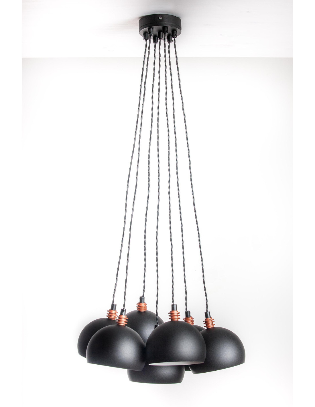 Lampa wisząca TESTER 7L została zaprojektowana jako uzupełnienie lamp"pająków" w kolorystyce jak wszystkie z rodziny tych lamp.Może świecić punktowo lub rozświetlić większy obszar wnętrza.Klosze w tej lampie można układać dowolnie na różnych wysokościach lub stworzyć kształt wianuszka-prosta regulacja wysokości.
