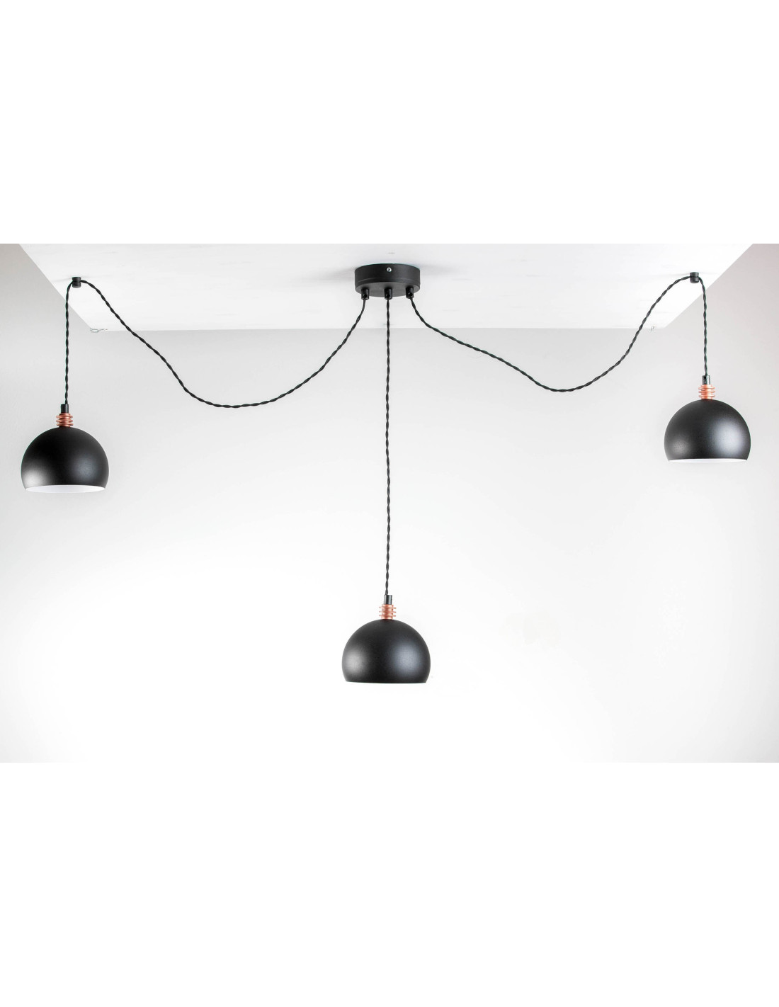 Lampa pająk TESTER 3LP-elegancka,stylowa lampa stanowi ciekawy pomysł na designerskie oświetlenie wnętrza.W lampie wszystko jest regulowane i zależy od naszej wizji.Lampa ta zrywa z tradycyjnym podejściem do oświetlenia przestrzeni mieszkalnych.W tej lampie nic nie jest przypadkowe.Ekspresji dodają kolory kul jak i też kabel podwójnie skręcony w czarnym bawełnianym oplocie.