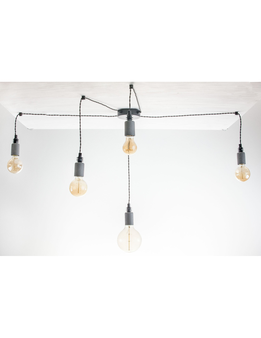 Lampa pająk wisząca żarówka BETON 5NP-elegancka,stylowa lampa stanowi ciekawy pomysł na designerskie oświetlenie wnętrza.W lampie wszystko jest regulowane i zależy od naszej wizji.Lampa ta zrywa z tradycyjnym podejściem do oświetlenia przestrzeni mieszkalnych. W tej lampie nic nie jest przypadkowe. Lampa ta świetnie wpisze się w klimaty wnętrz industrialno-loftowych. Lampa ręcznie robiona - poszukujesz innych kolorów - napisz do nas!