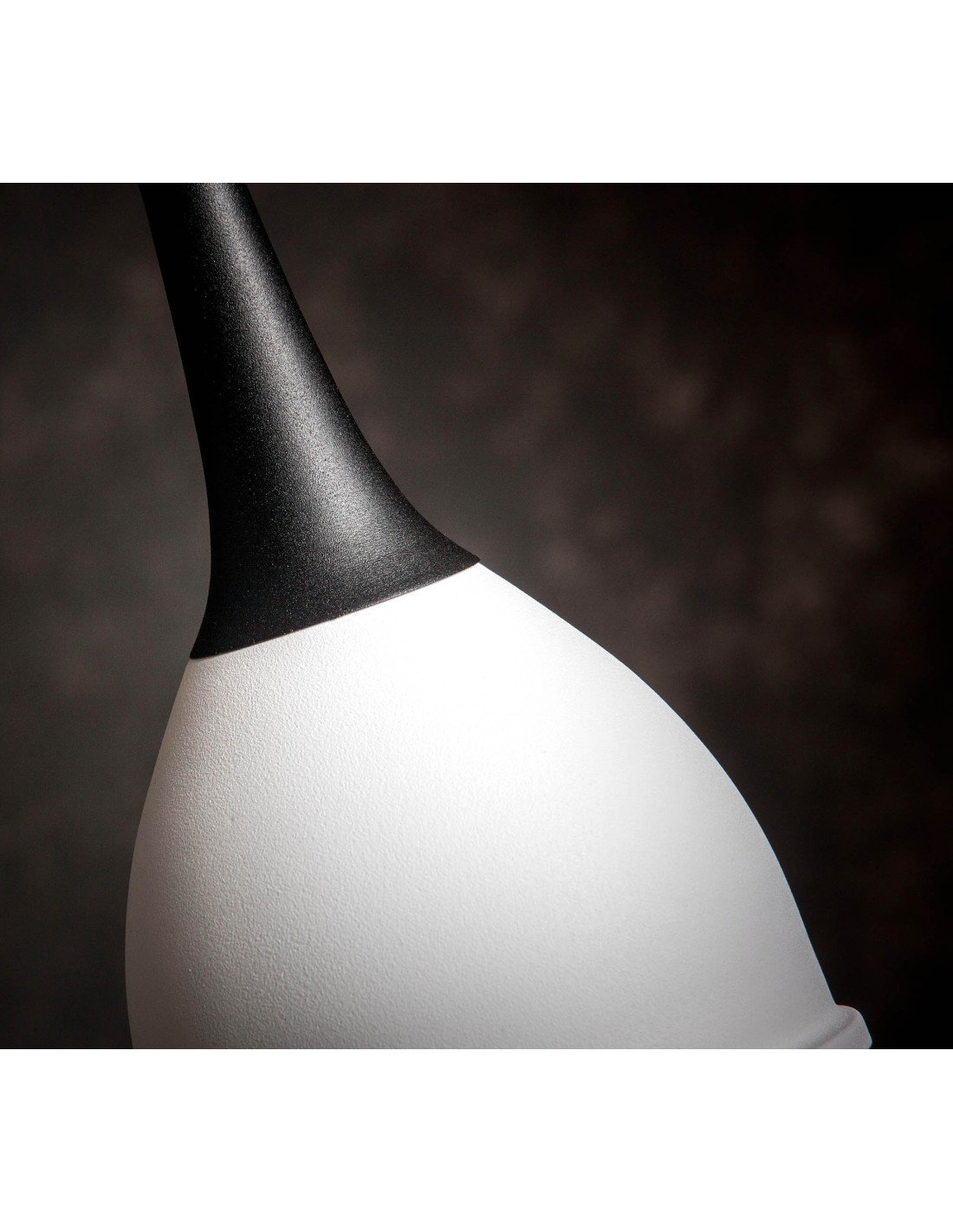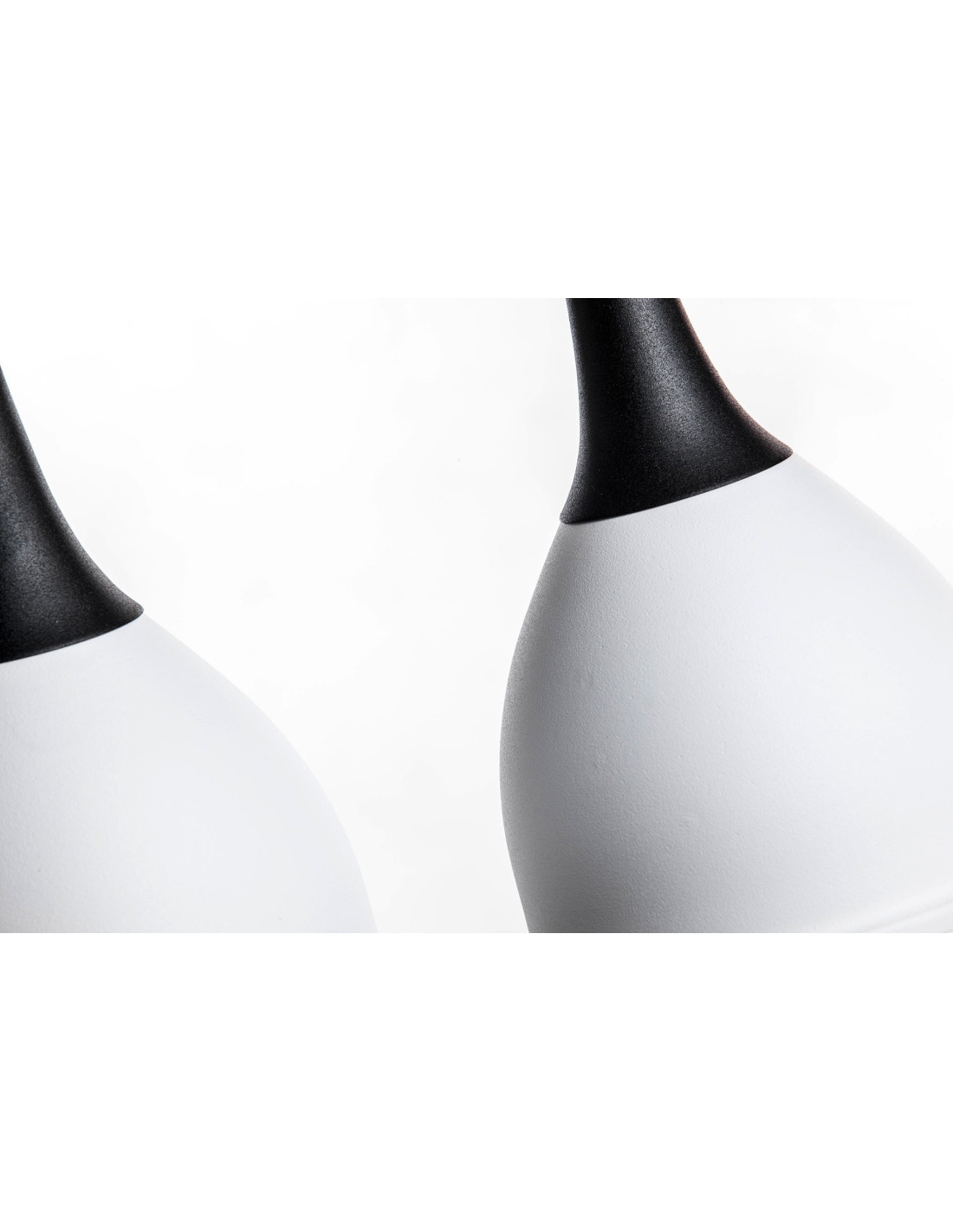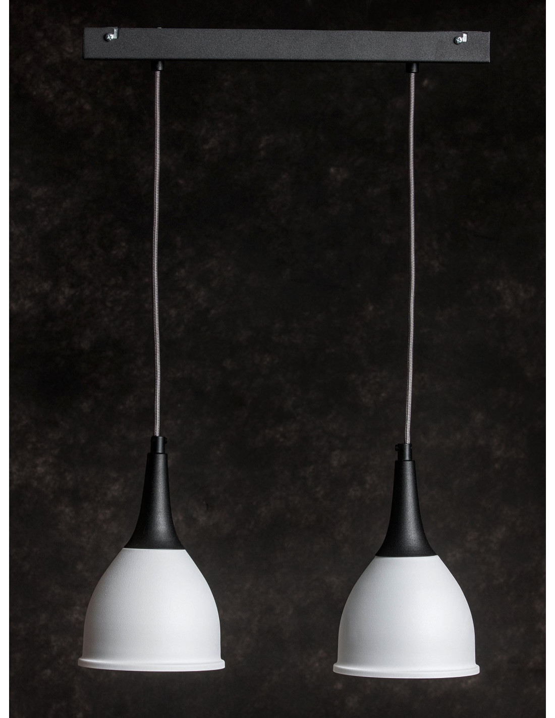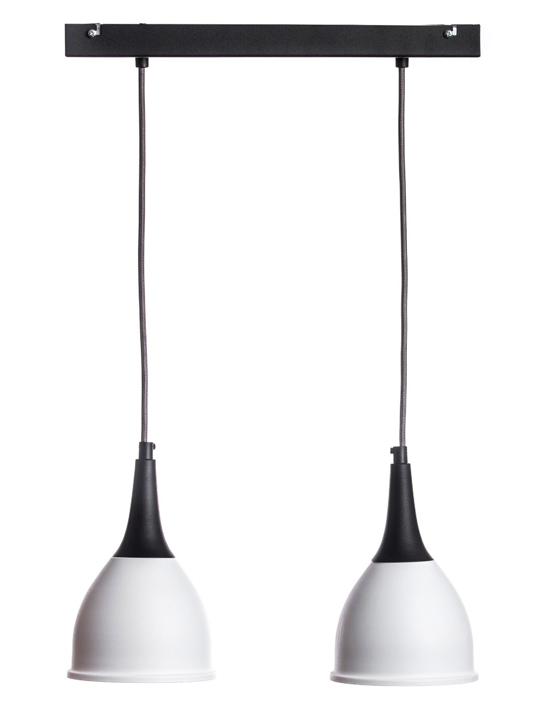 Lampa Monic 2-pkt.w kolorze czarno białym charakteryzuje się niezwykle nowoczesnym kształtem klosza wykonanego z metalu, swoim kształtem przypominającego krople wody.Lampa jest nowoczesna i niepowtarzalna. Dopełnieniem designu lampy jest kabel w bawełnianym szarym oplocie. Lampa ta stanowić będzie idealne uzupełnienie nowoczesnych aranżacji.