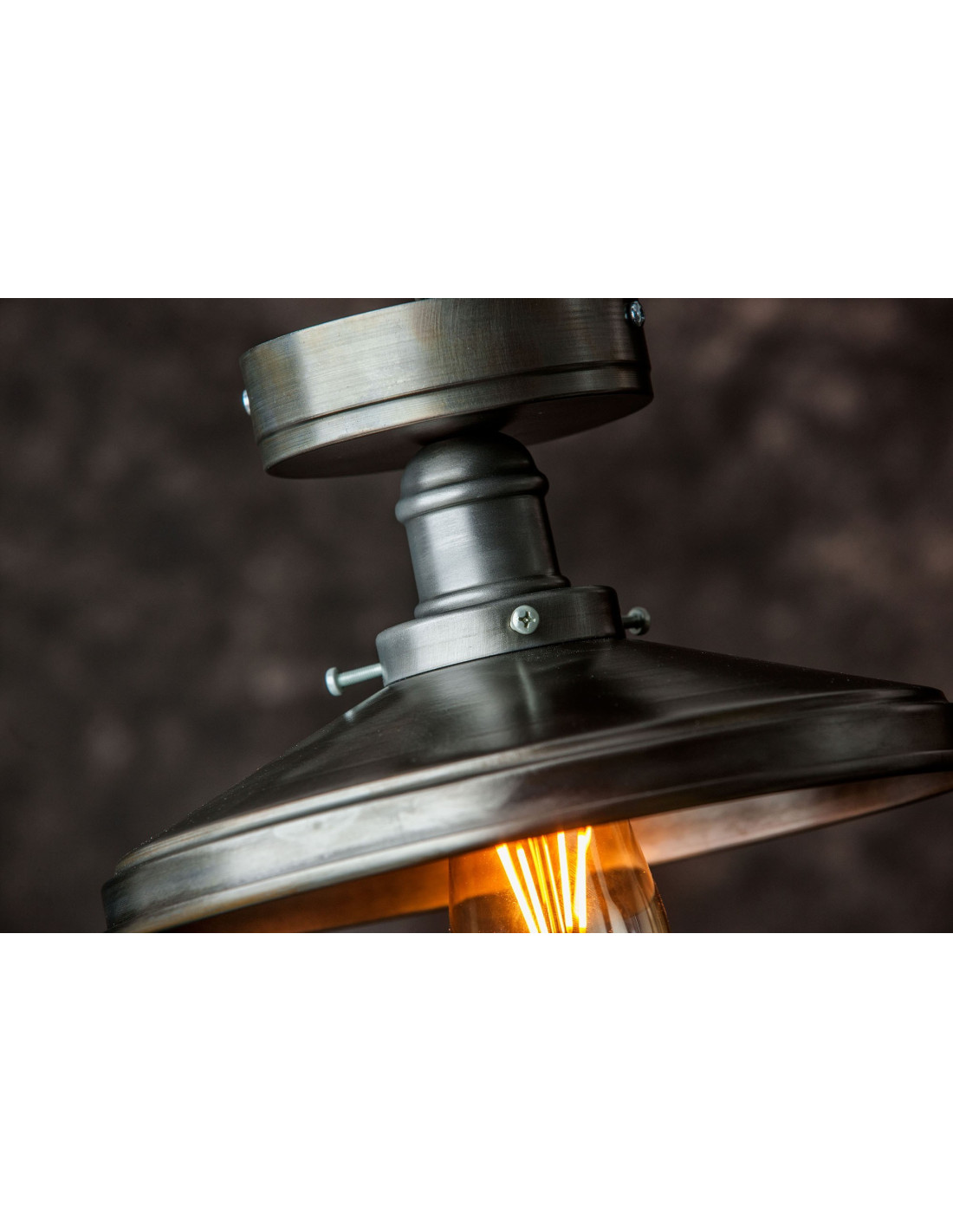 Plafon industrialno-loftowy TB/SPS/TPD wykonany jest w całości ze stali. Stal została poddana ręcznemu procesowi szczotkowania i polerowania a następnie została zabezpieczona proszkowo lakierem.Stal surowa – może posiadać ślady rdzy.Oprawka schowana w podkloszówce na duży gwint.Lampa unikatowa o wyrafinowanym designie.Świetnie wpisze się we wnętrza o charakterze loftowym.