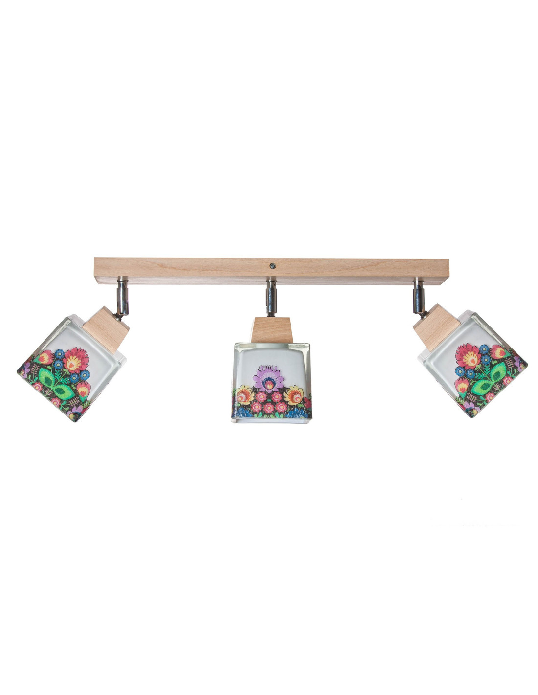 Plafon folkowy 3A wykonany z litego drewna bukowego,które zostało poddane procesowi woskowania.Do produkcji jego użyliśmy szkła w kształcie kwadratu ,które ręcznie zostało ozdobione motywami w stylu folk.Klosze zostały zamontowane na przegubach i wyposażone w oprawkę E27 co powoduje ,że w epoce ledów może oświetlić ok 20 m2.Unikalny design lampy powoduje ,że nie przejdziemy obok niej obojętnie.