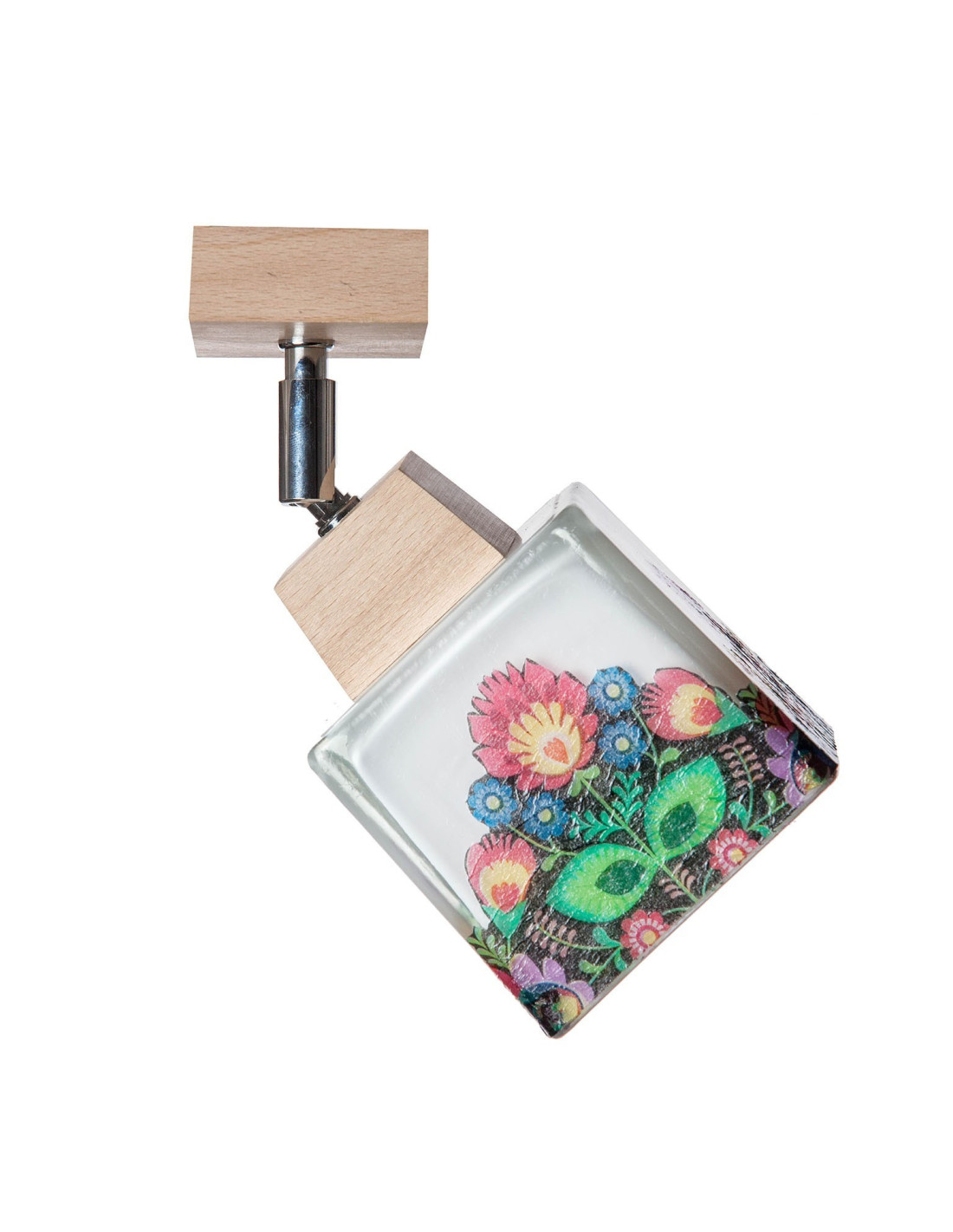 Plafon folkowy 1A wykonany z litego drewna bukowego,które zostało poddane procesowi woskowania.Do produkcji jego użyliśmy szkła w kształcie kwadratu ,które ręcznie zostało ozdobione motywami w stylu folk.Klosz został zamontowany na przegubie i wyposażony w oprawkę E27 co powoduje ,że w epoce ledów może oświetlić ok 10 m2.Unikalny design lampy powoduje ,że nie przejdziemy obok niej obojętnie.