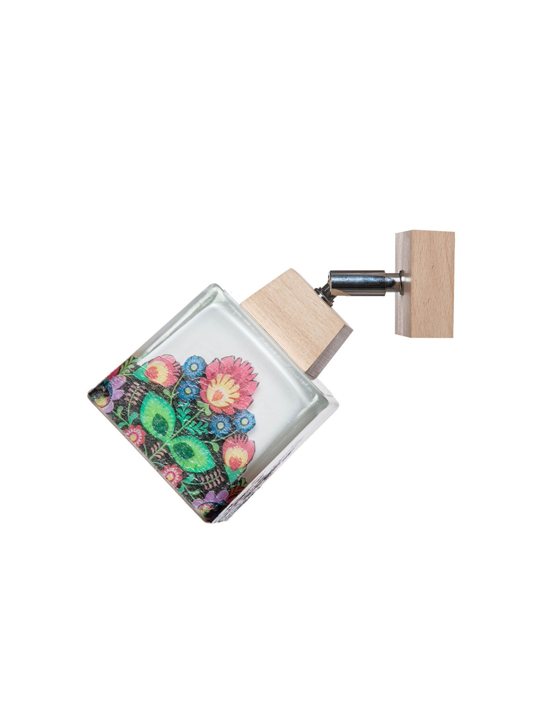 Kinkiet folkowy 1A wykonany z litego drewna bukowego,które zostało poddane procesowi woskowania.Do produkcji jego użyliśmy szkła w kształcie kwadratu ,które ręcznie zostało ozdobione motywami w stylu folk.Klosz został zamontowany na przegubie i wyposażony w oprawkę E27 co powoduje ,że w epoce ledów może oświetlić ok 10 m2.Unikalny design lampy powoduje ,że nie przejdziemy obok niej obojętnie.