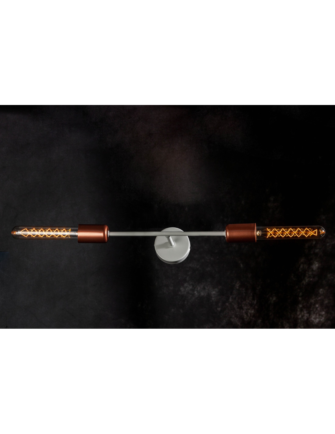Jeżeli lubisz modne i unikatowe dodatki to właśnie znalazłeś wymarzoną lampę dla siebie! Ten kinkiet spełnia podwójną rolę, może rozświetlić 12 m2 pokój przy użyciu zwykłych żarówek typu led, lub nadać wnętrzu kameralności, w tym przypadku najlepiej spełnią się żarówki węglowe.Beżowy kolor lampy wykończony elementami w kolorze miedzi wpisze się prawie w każde wnętrze:salom,kuchnia, hol, gabinet.