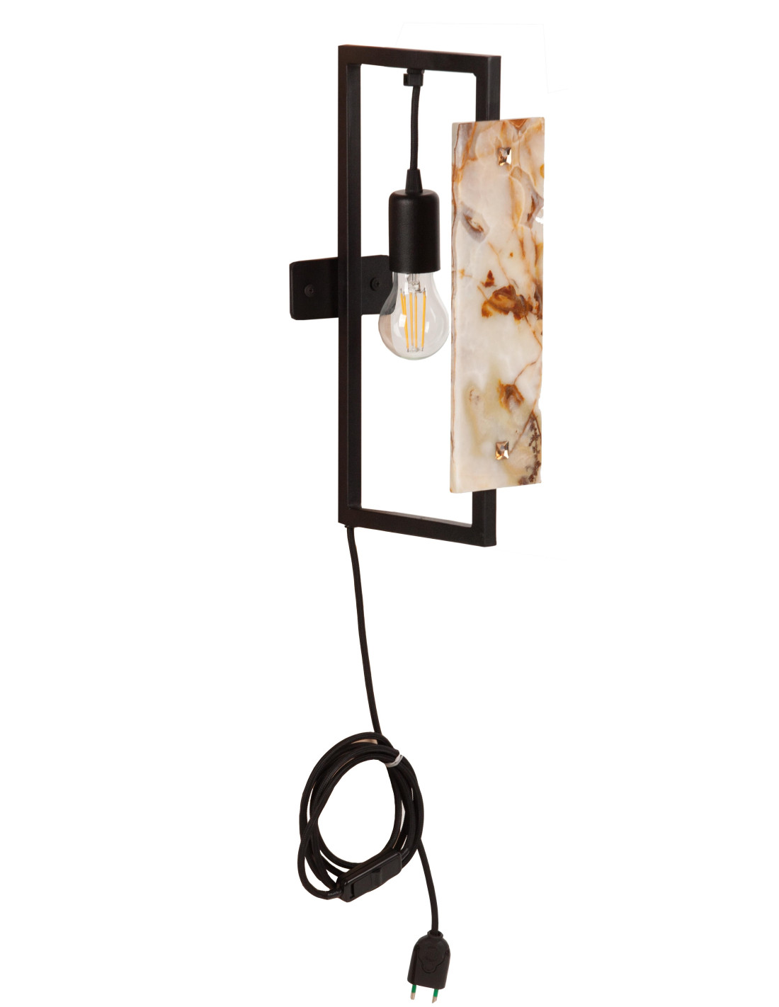 Kinkiet ONYKS możemy zaliczyć do ekskluzywnych i designerskich lamp. Stworzony został dla klienta wymagającego, poszukującego czegoś odmiennego co do dziś jeszcze nie zaistniało .W kinkiecie zawarto dwa style industrialny i glamour.Wykończeniem industrialnej bryły jest tafla z onyksu i złote kryształy asfour. Nie zostawiono też przypadkowi rodzaju kabla i wtyczki.