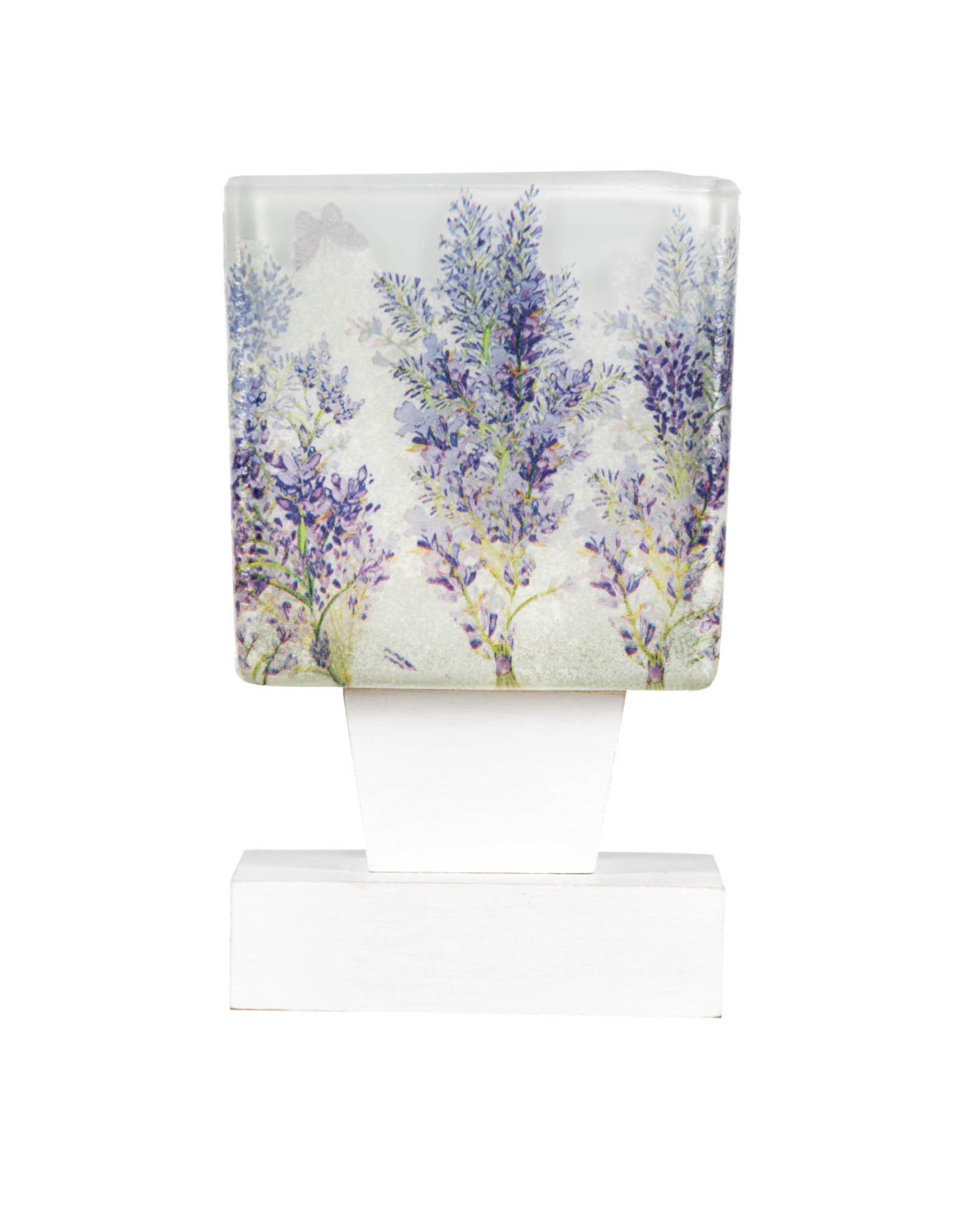 Klosz biały szklany włoski, z ręcznie dekorowanym motywem kwiatów lawendy.Wzór zabezpieczony lakierem transparentnym.Klosz wykonany ręcznie z niezwykłą starannością z wysokiej jakości szkła (białego) matowego w formie kwadratu. Jest fabrycznie nowy, pochodzi prosto naszego zakładu.Klosz nadaje się do lamp wiszących jest na oprawkę E27.
