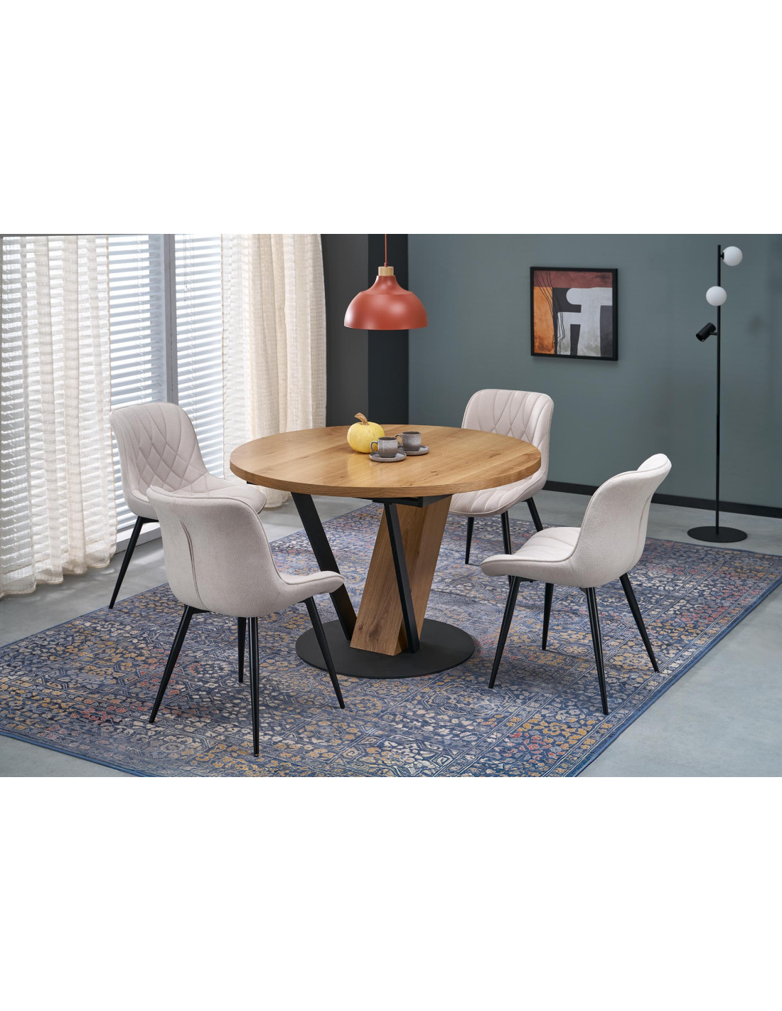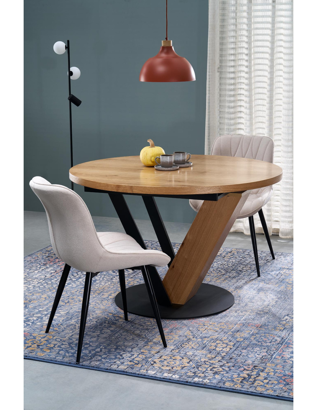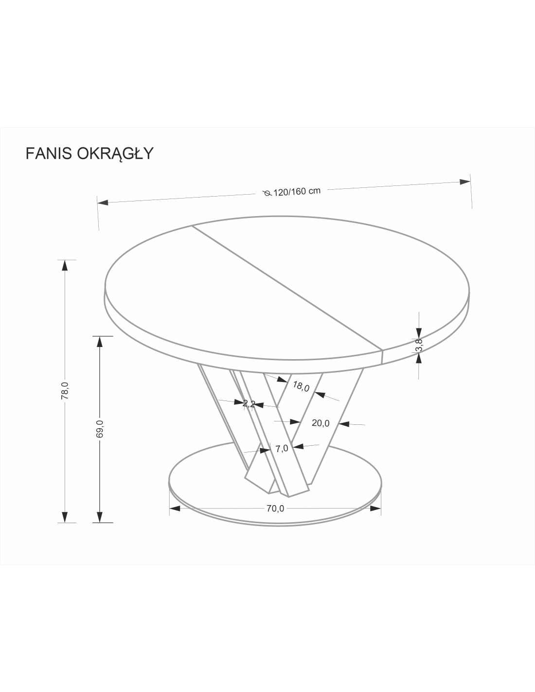 FANIS okrągły stół rozkładany, naturalny / czarny (3p 1szt)