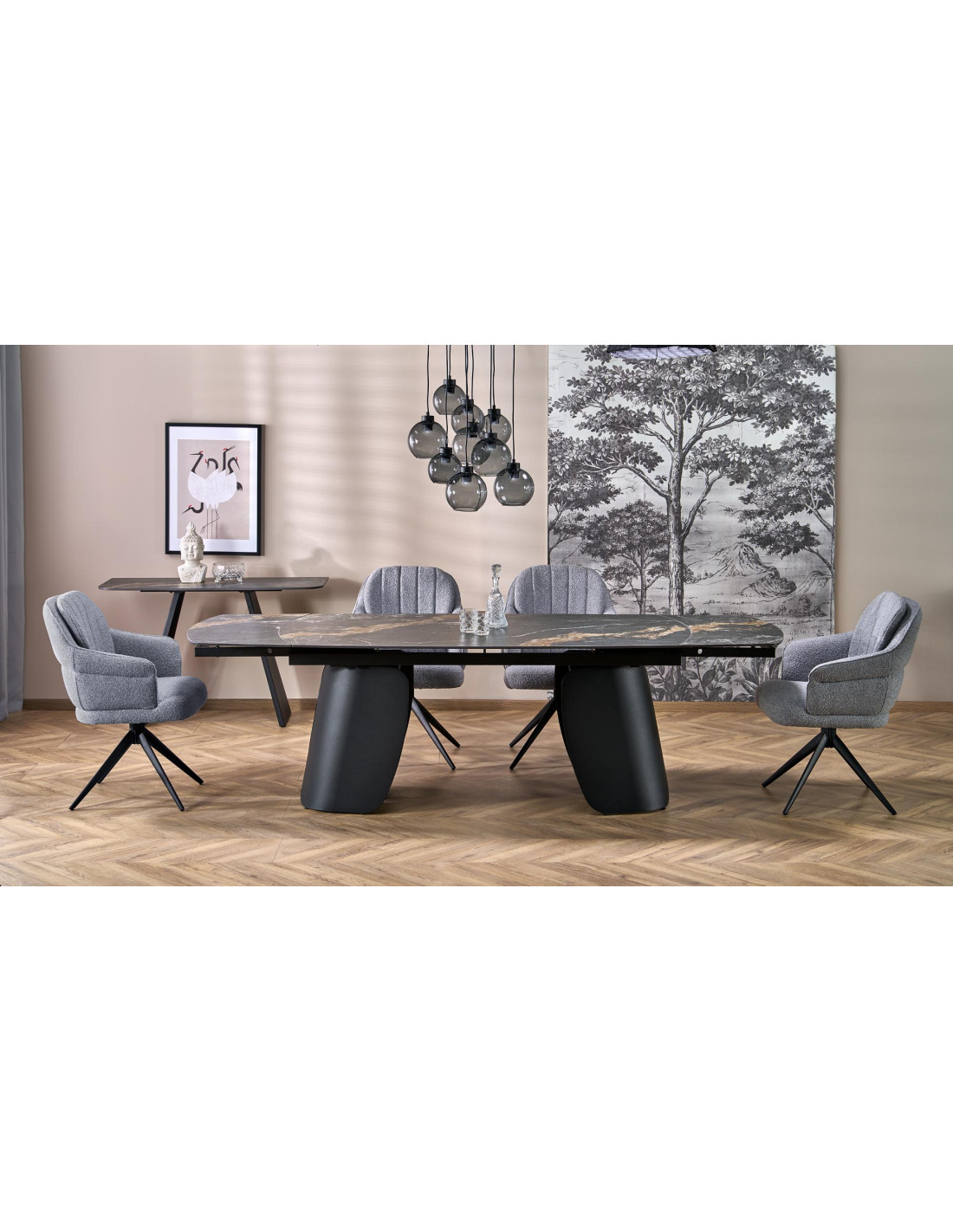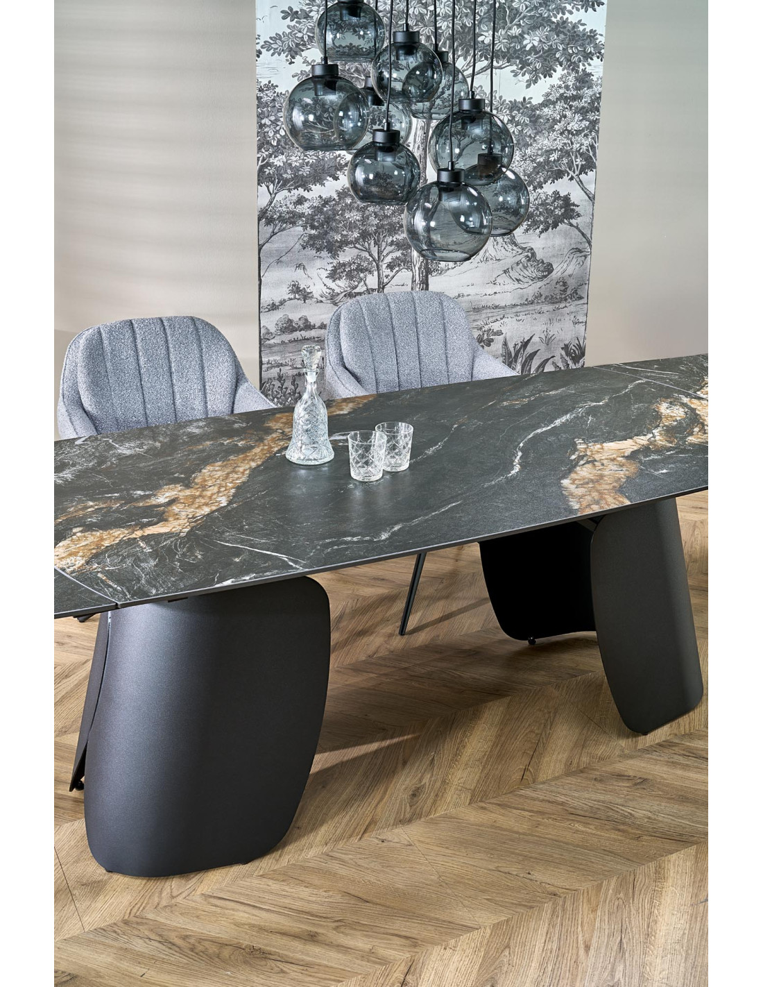FORUM stół rozkładany, czarny marmur / czarny (3p 1szt)