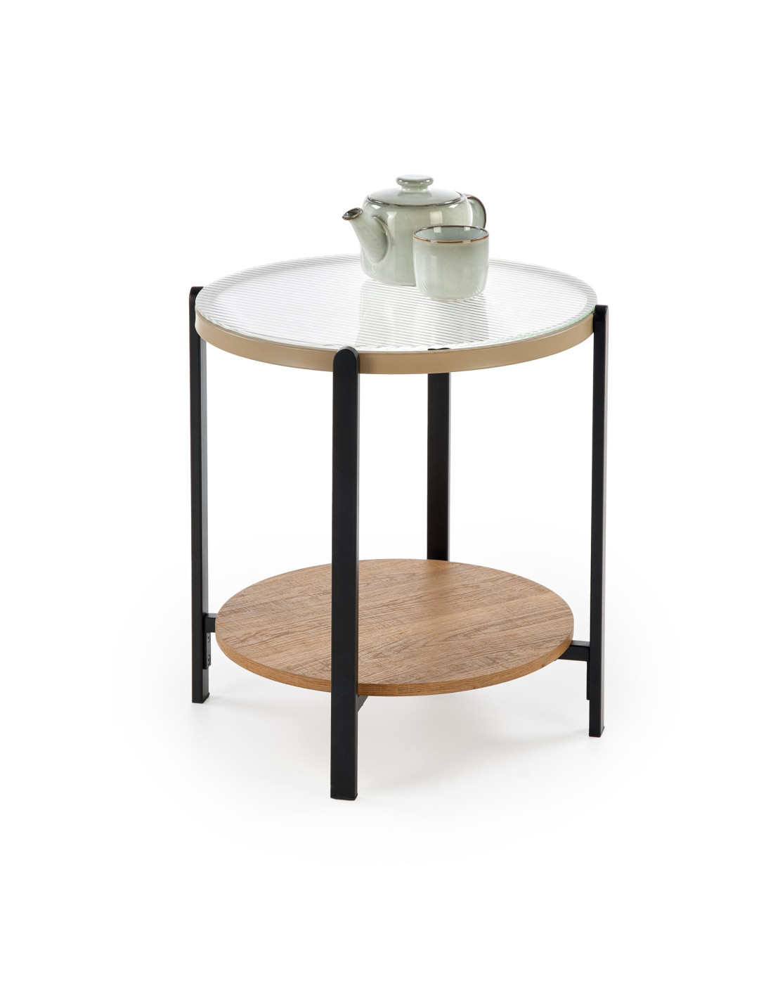 materiał: szkło / MDF okleinowany / stal malowana proszkowo