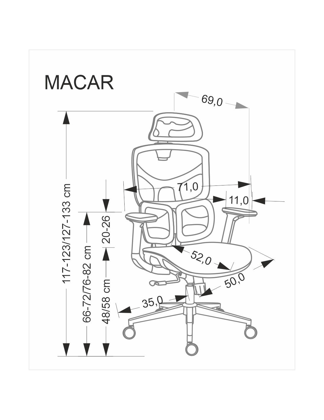 funkcja MULTIBLOCK / regulowane podłokietniki / regulowany zagłówek / regulowana wysokość oparcia / aktywny punkt podparcia pleców, siatka