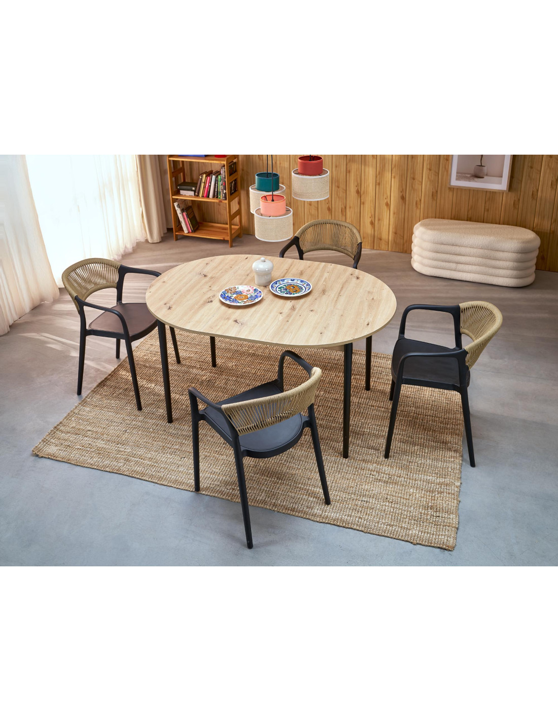 PIVOT stół rozkładany 102-142x102x75 cm, blat - dąb artisan, nogi - black