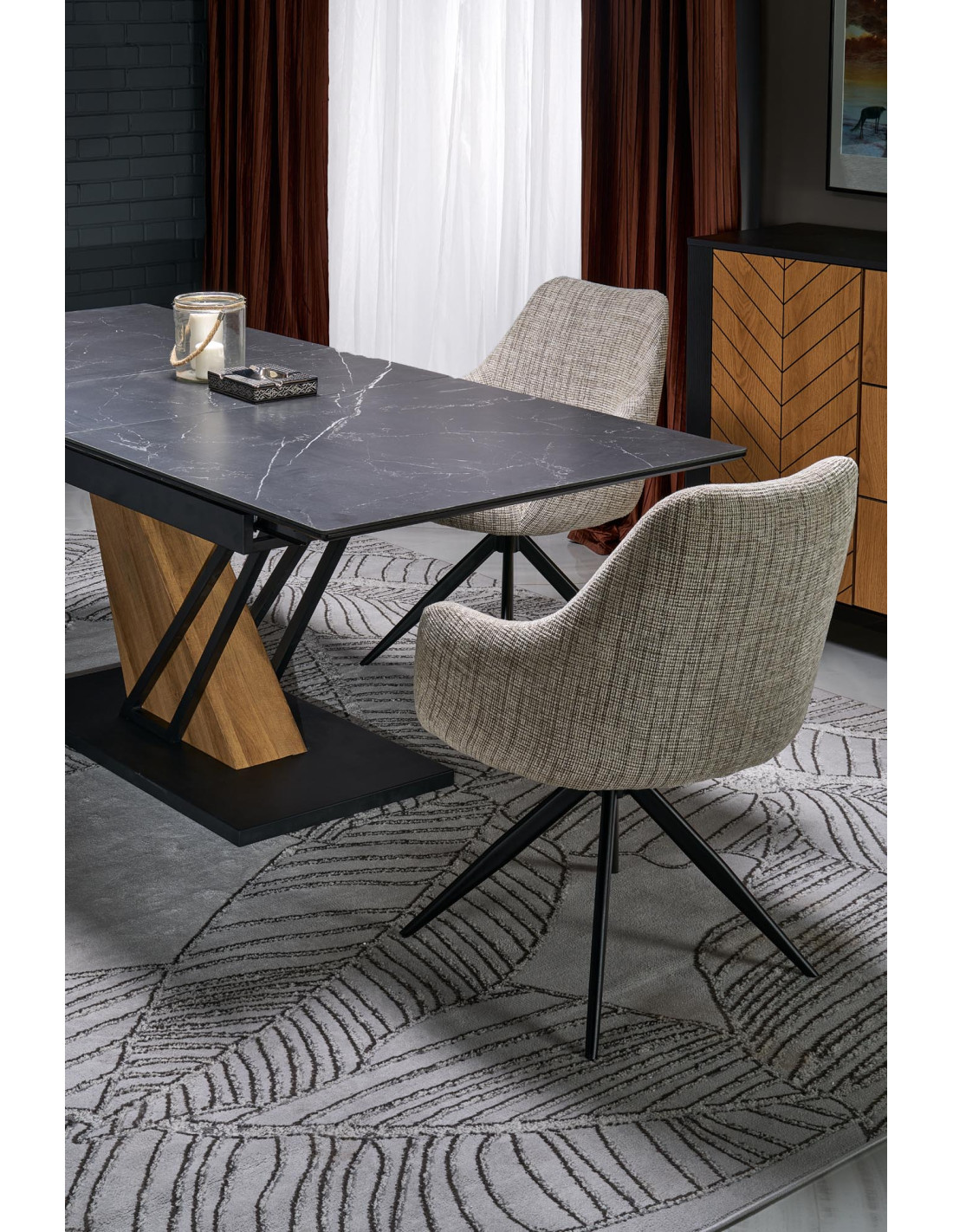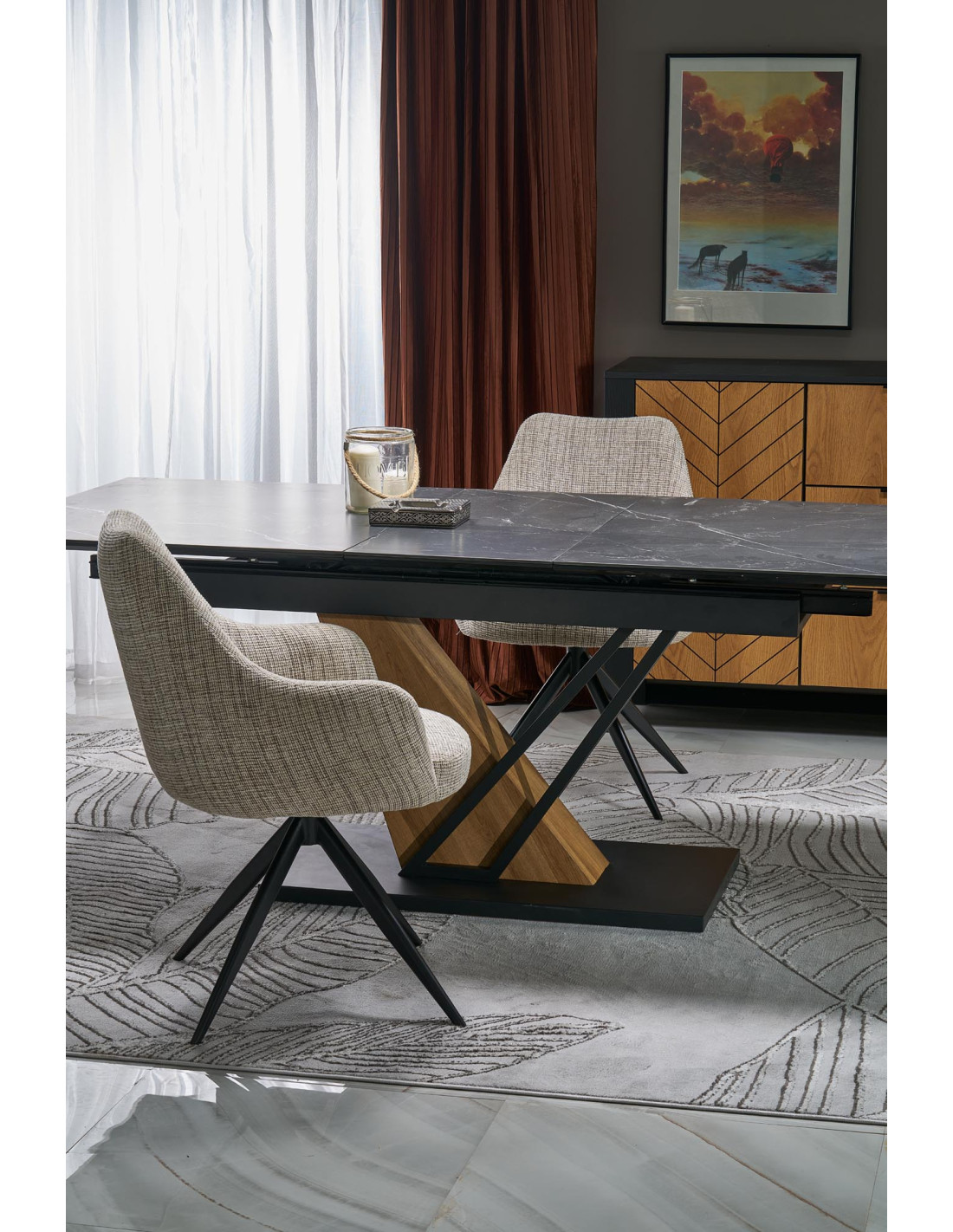 VOLANT 160 stół rozkładany, blat - czarny marmur, nogi - dąb złoty / czarny