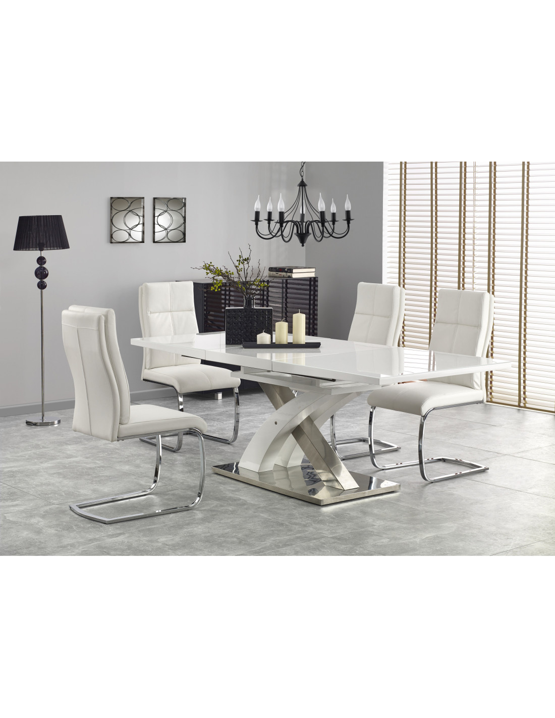 Stół rozkładany szkło / mdf SALVADOR 2 biały
