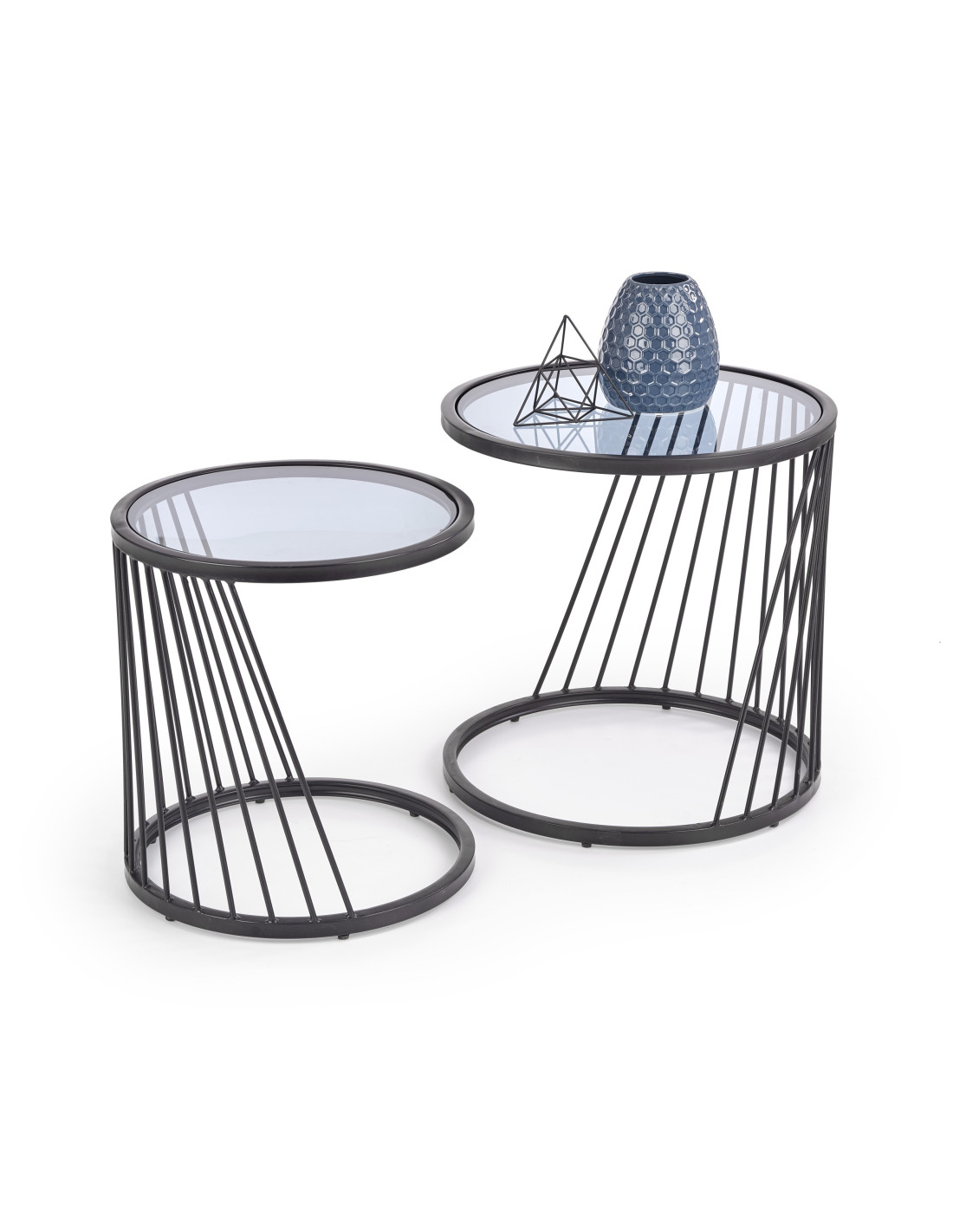 Zestaw 2 okrągłych ław szklanych WALKER szkło dymione