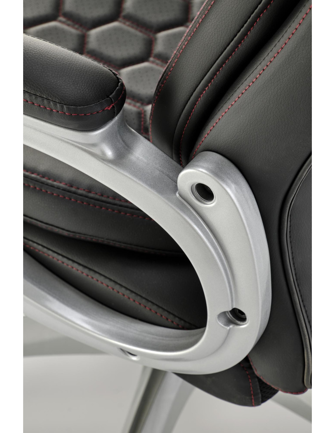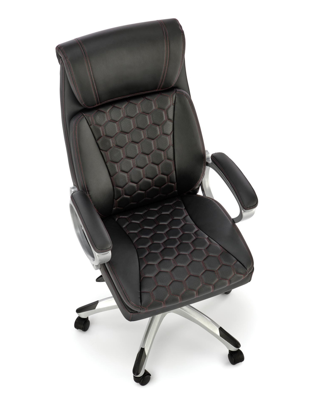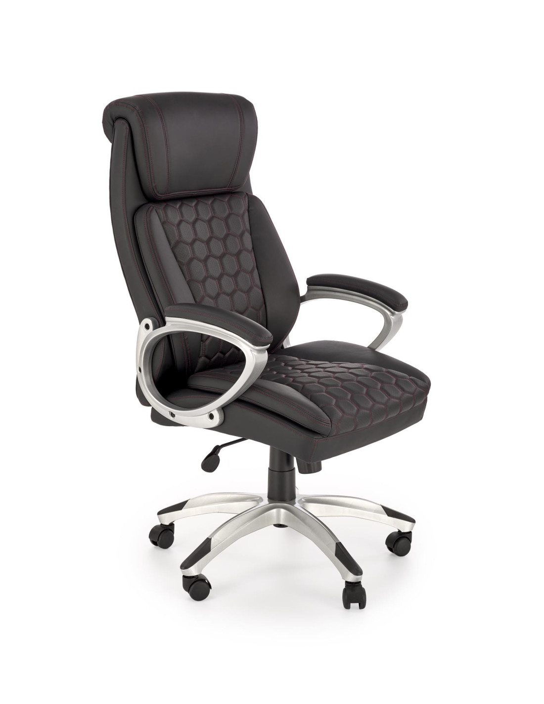 Zainspiruj się fotelem gabinetowym THOMAS, który łączy nowoczesny design z wyrafinowanym komfortem. Jego ergonomiczny kształt, wysoka jakość materiałów oraz unikalna perforowana powierzchnia w kształcie sześciokątów sprawiają, że każdy moment spędzony w nim staje się prawdziwą przyjemnością. Czerwone przeszycia dodają mu charakteru, a solidna konstrukcja z metalową podstawą na kółkach zapewnia stabilność i mobilność.