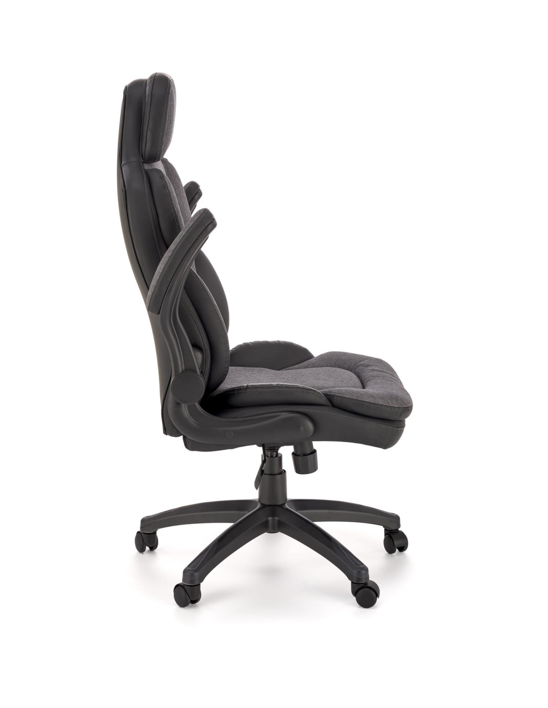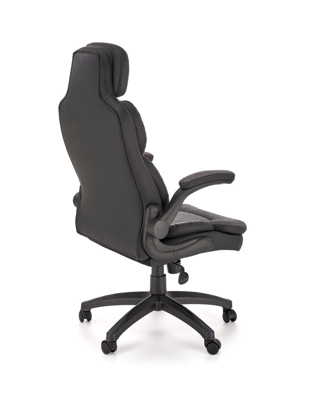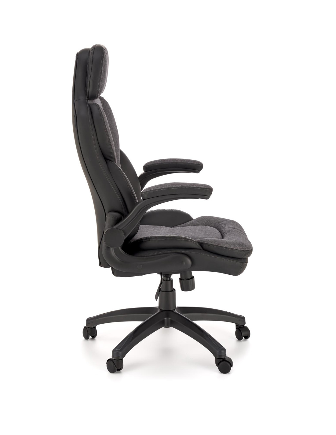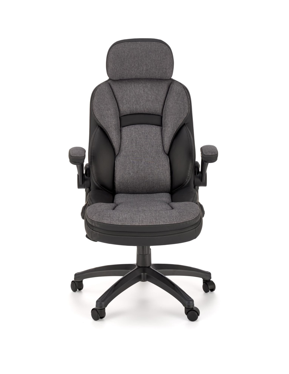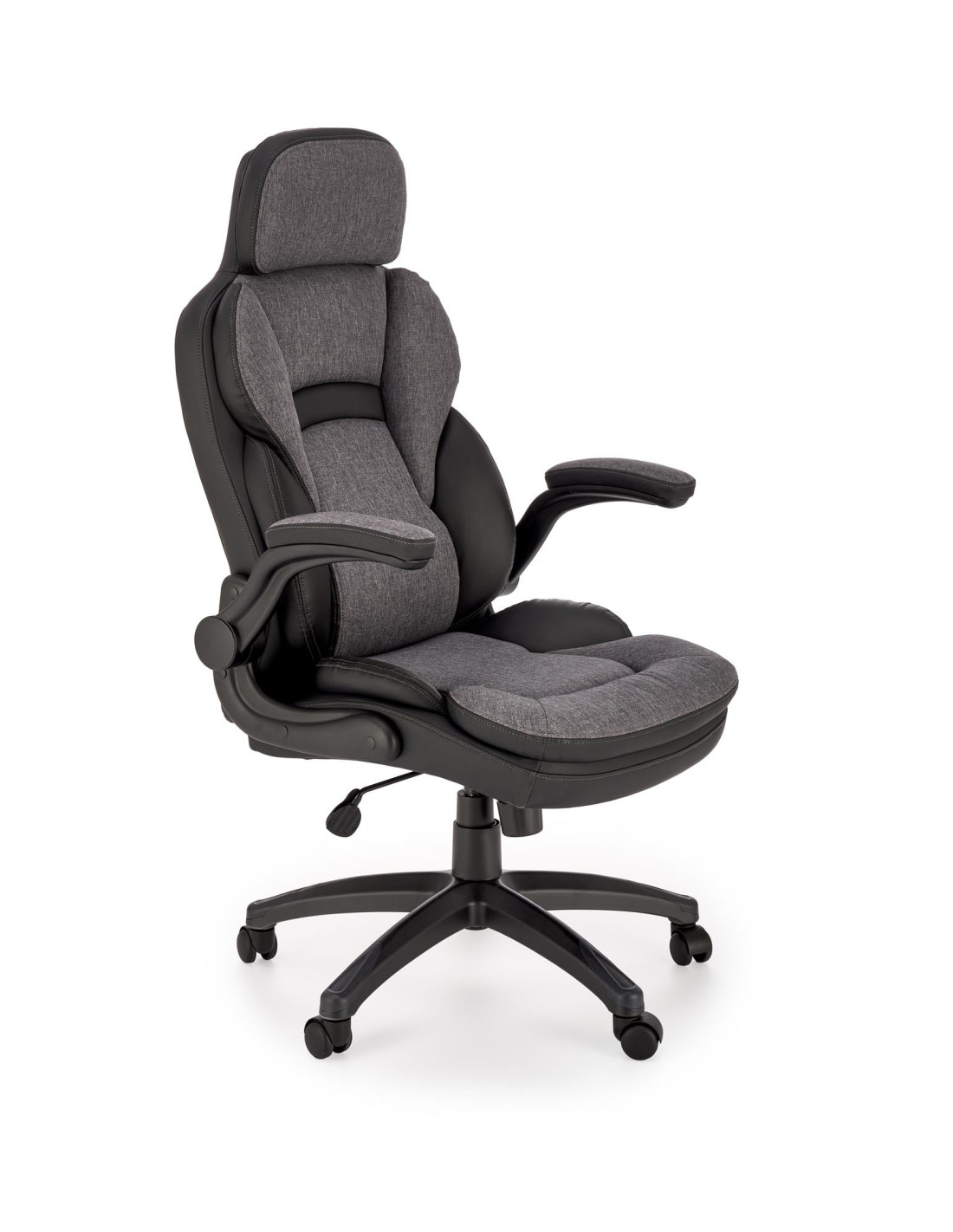 Szukasz rozwiązania? Oto ono! Fotel gabinetowy VALERIO to doskonałe połączenie nowoczesnego stylu i maksymalnego komfortu. Ergonomiczny kształt, wygodne, miękkie poduszki na siedzisku, oparciu i podłokietnikach sprawiają, że każda chwila spędzona w tym fotelu staje się przyjemnością. Fotel wykonany z eco-skóry oraz tkaniny w eleganckim czarno-popielatym kolorze, wprowadza do Twojego biura czy gabinetu nutę wyrafinowania.
