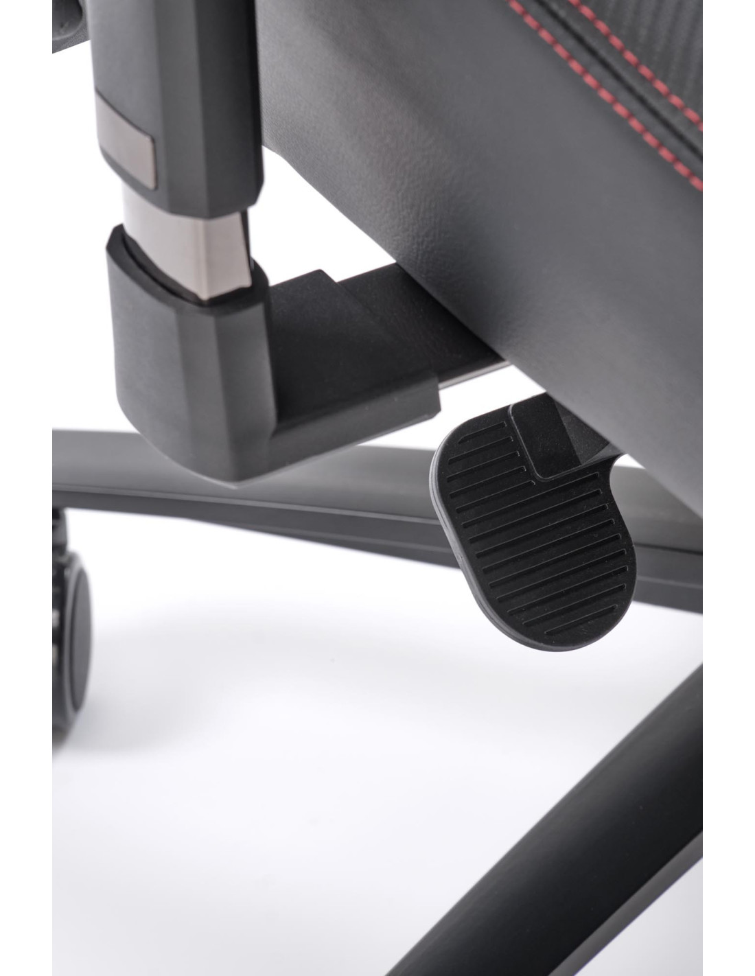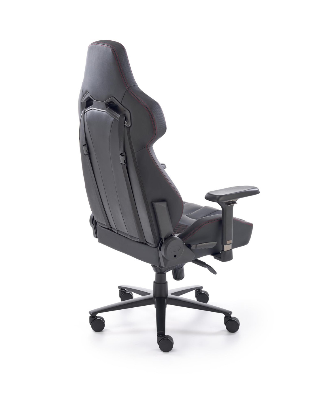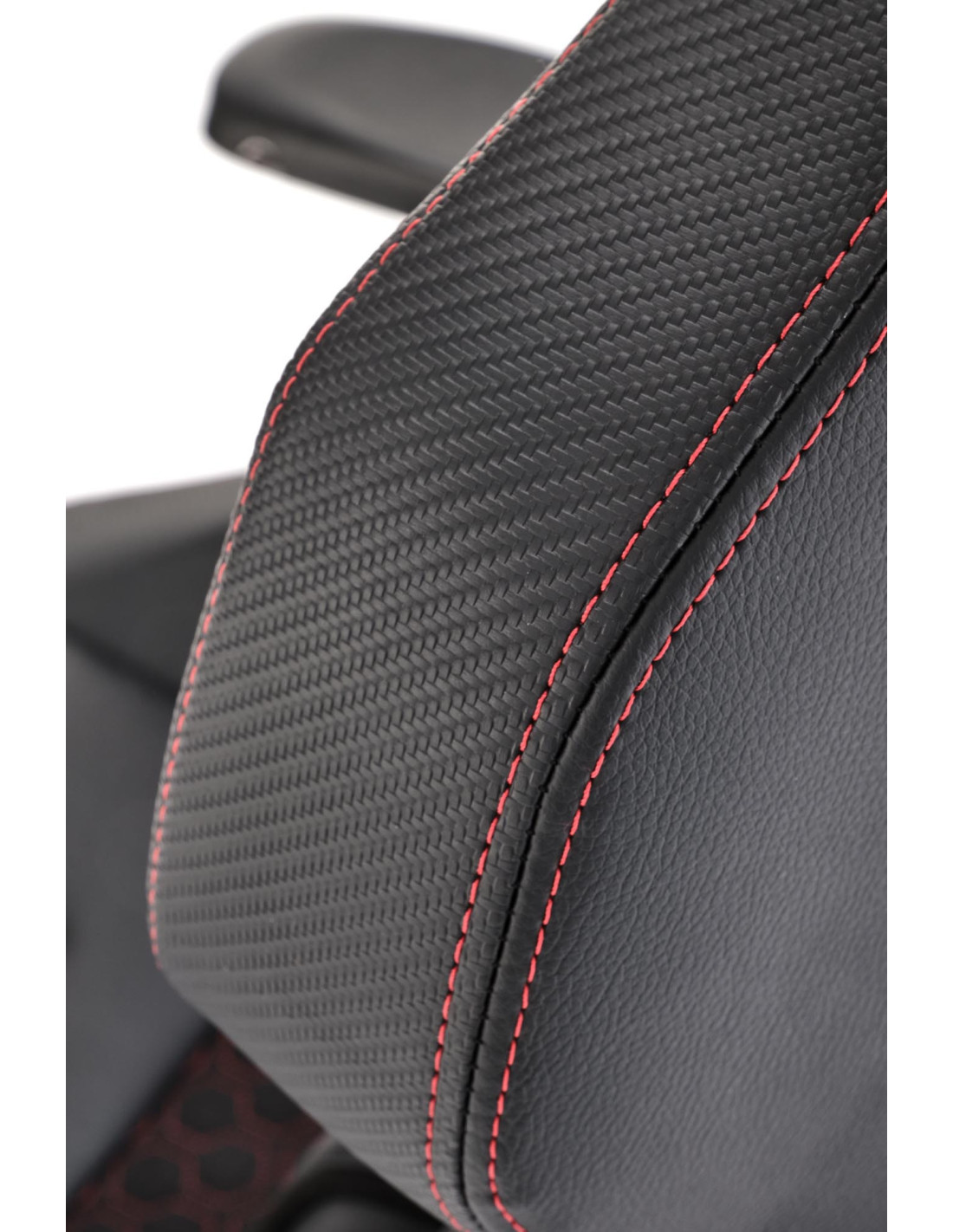 Szukasz rozwiązania? Oto ono! Fotel gabinetowy BALDUR to połączenie nowoczesnego designu oraz maksymalnego komfortu. Ergonomiczna konstrukcja, regulowane podłokietniki oraz wyprofilowane oparcie z podparciem lędźwiowym sprawiają, że spędzanie czasu w tym fotelu to czysta przyjemność. Wykonany z eco-skóry w eleganckim czarno-popielatym kolorze z czerwonymi akcentami, idealnie wpasuje się w industrialne oraz gamingowe wnętrza.