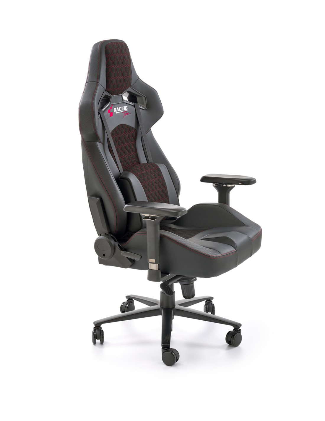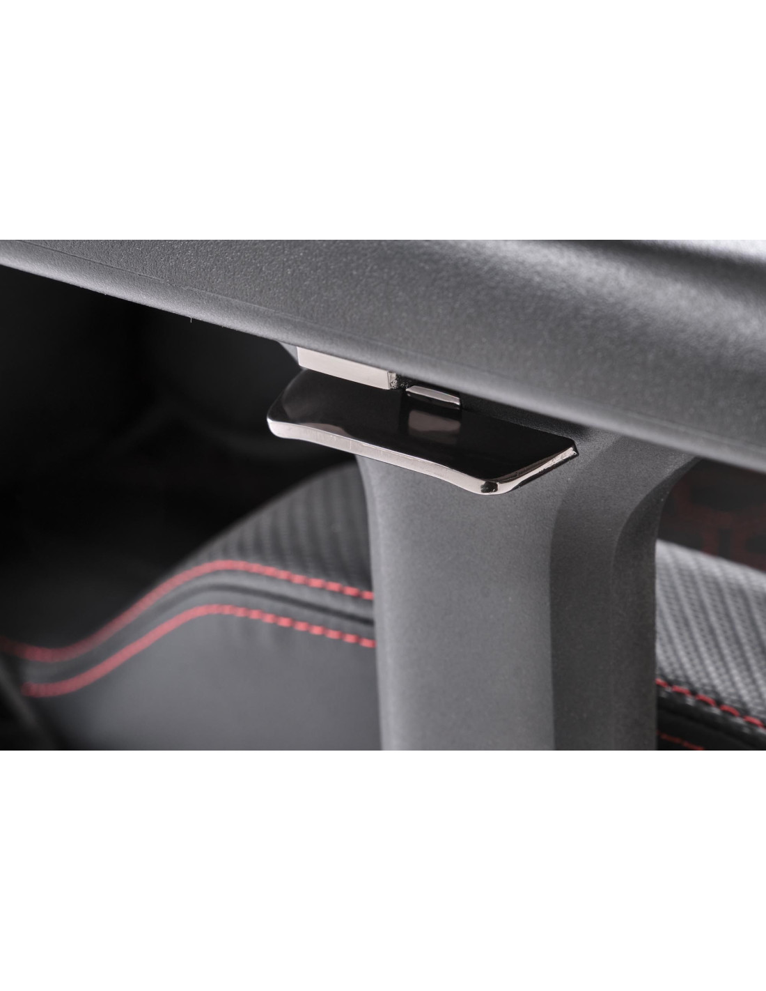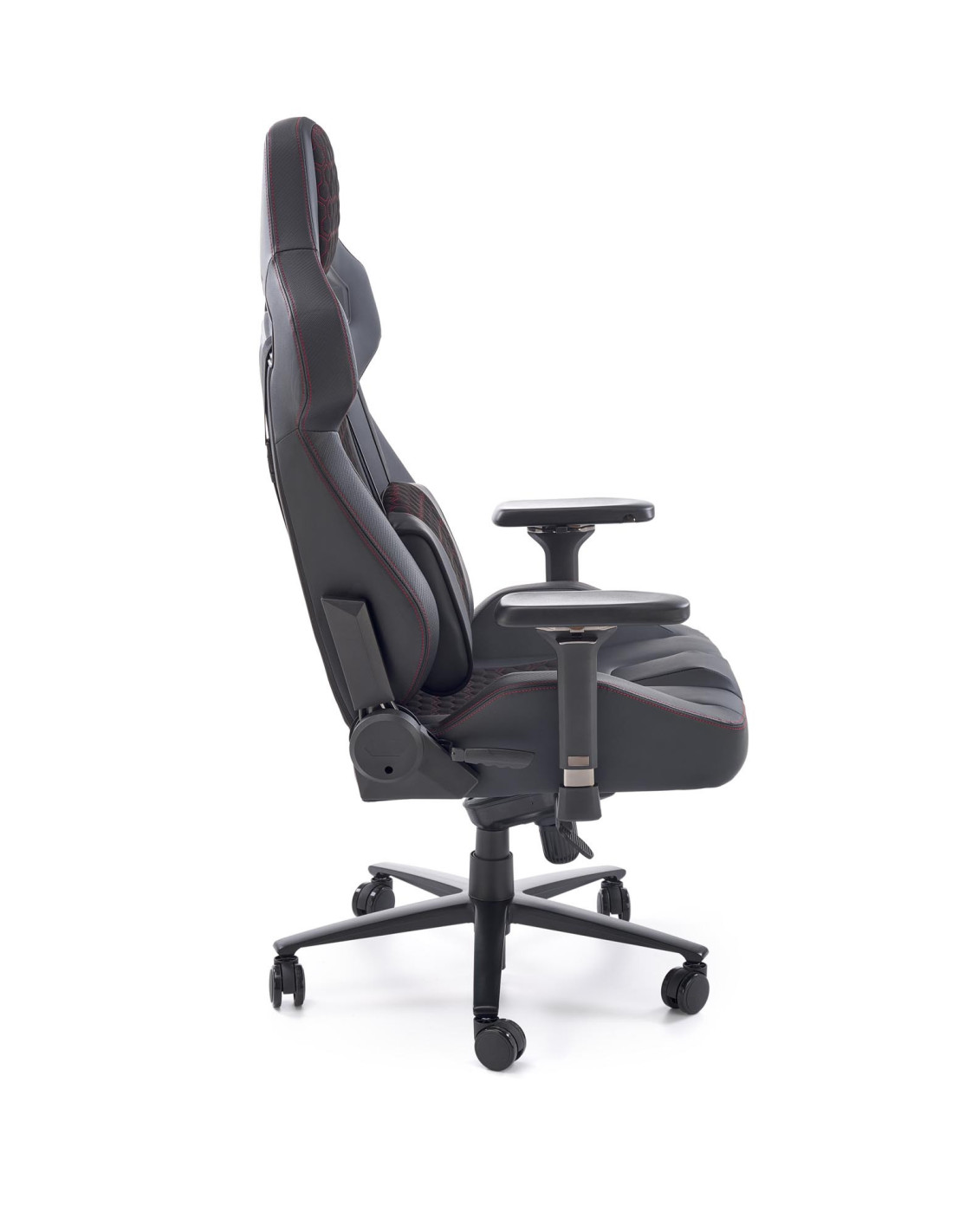 Szukasz rozwiązania? Oto ono! Fotel gabinetowy BALDUR to połączenie nowoczesnego designu oraz maksymalnego komfortu. Ergonomiczna konstrukcja, regulowane podłokietniki oraz wyprofilowane oparcie z podparciem lędźwiowym sprawiają, że spędzanie czasu w tym fotelu to czysta przyjemność. Wykonany z eco-skóry w eleganckim czarno-popielatym kolorze z czerwonymi akcentami, idealnie wpasuje się w industrialne oraz gamingowe wnętrza.