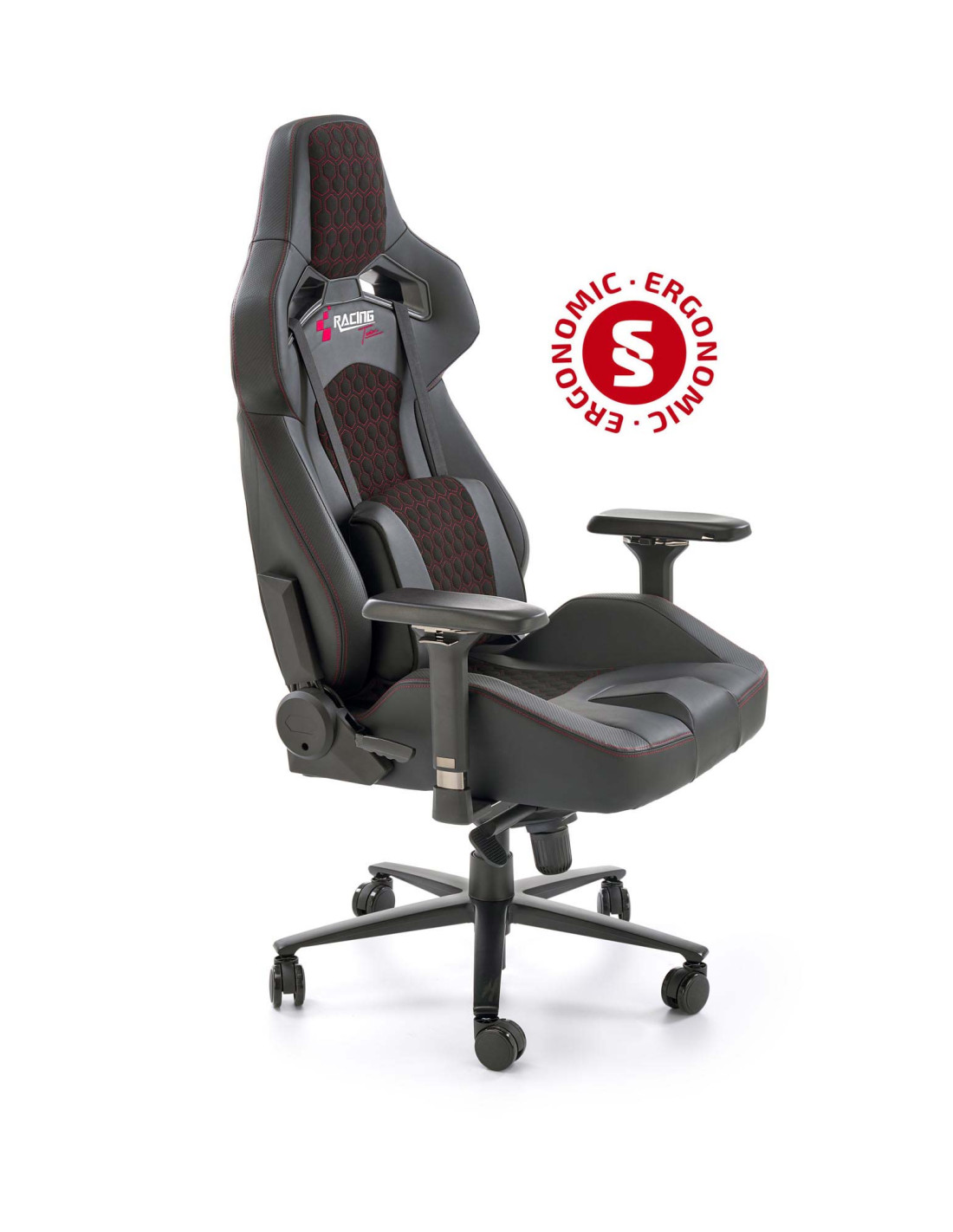 - ✅ Stylowy design: Czarno-popielaty kolor z czerwonymi akcentami sprawia, że fotel prezentuje się elegancko i nowocześnie.
