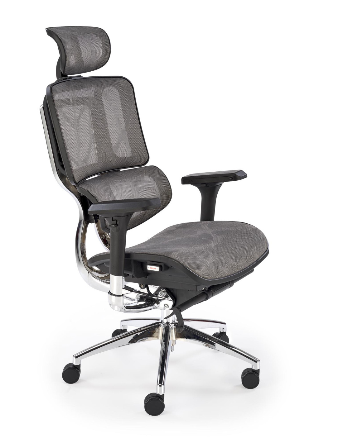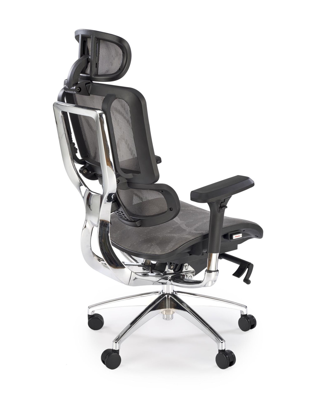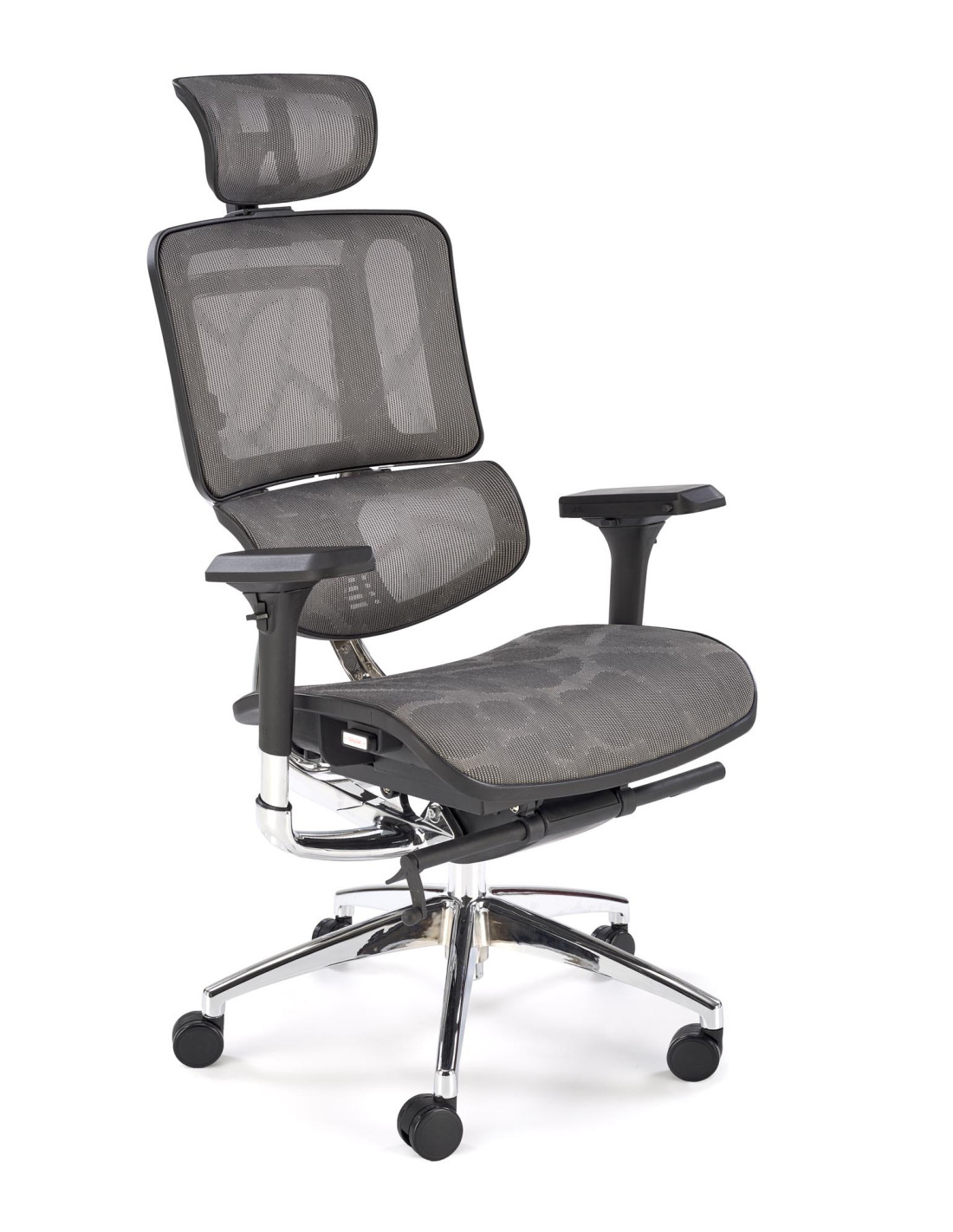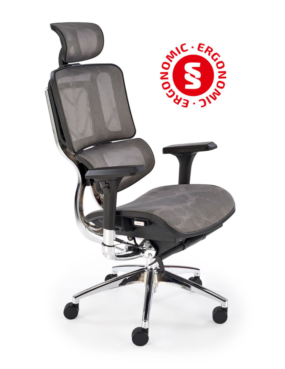 Stwórz doskonałe wnętrze z fotelem biurowym ETHAN, który harmonijnie łączy nowoczesny design z ergonomicznym komfortem. Jego wyjątkowy kształt oraz regulowane oparcie, podłokietniki i zagłówek sprawiają, że każda chwila spędzona w tym fotelu staje się prawdziwą przyjemnością. Siatkowe wykończenie siedziska i oparcia zapewnia doskonałą wentylację, co jest niezwykle istotne podczas długich godzin pracy. Chromowana, pięcioramienna podstawa z kółkami zapewnia nie tylko elegancki wygląd, ale także mobilność, umożliwiając łatwe poruszanie się po biurze.