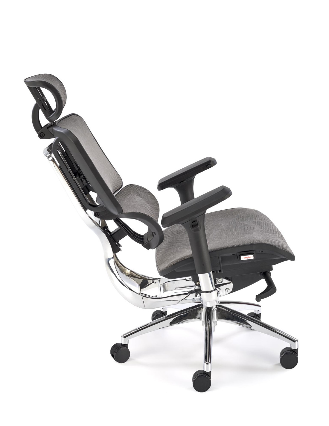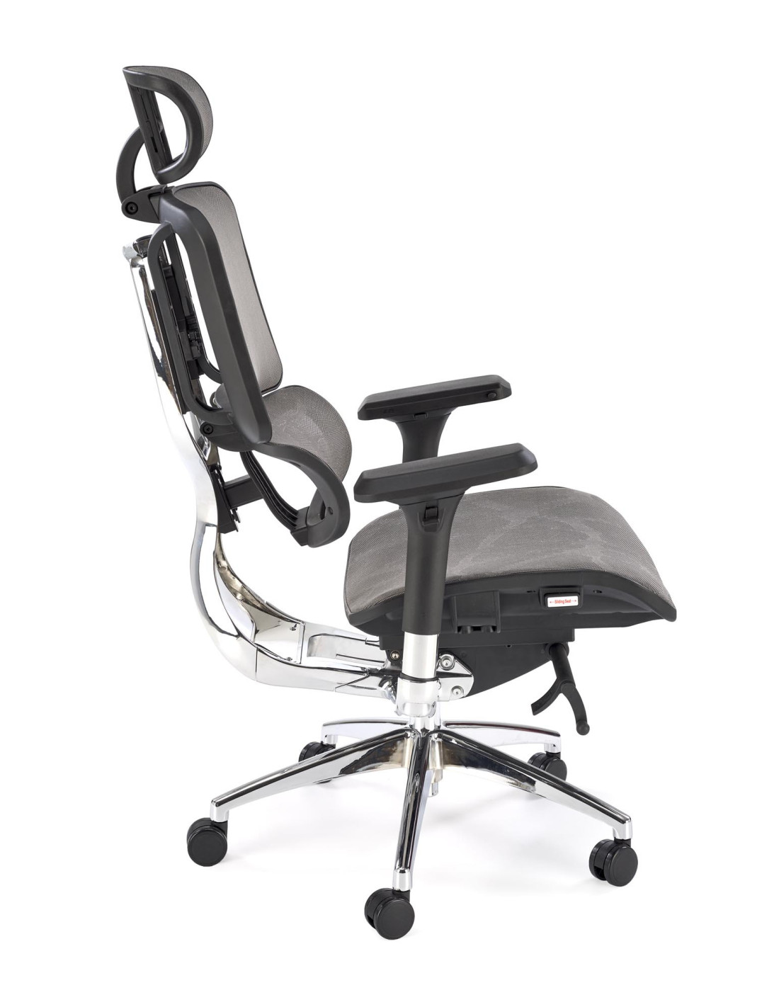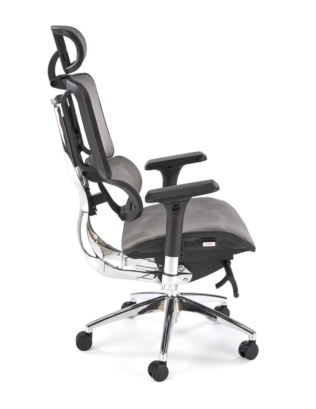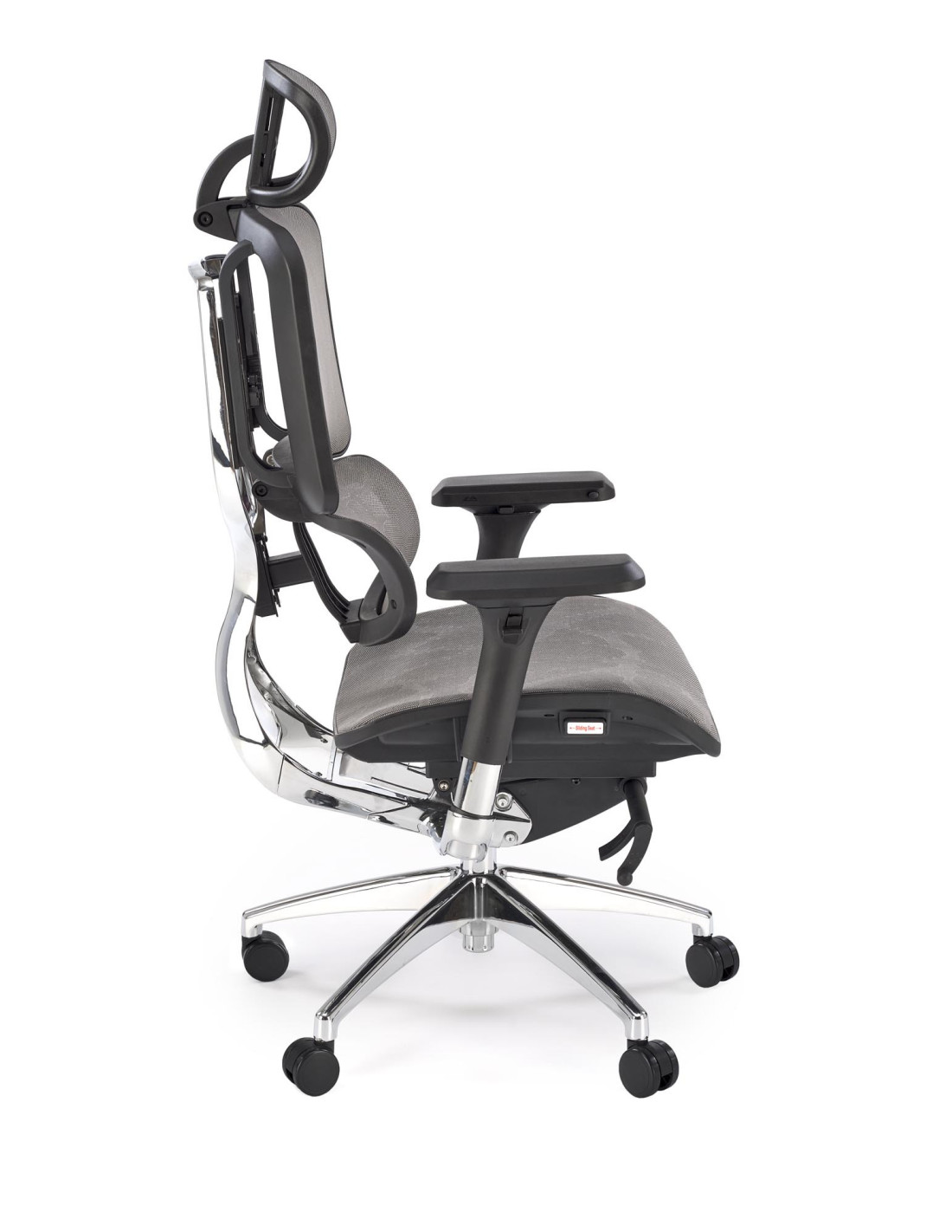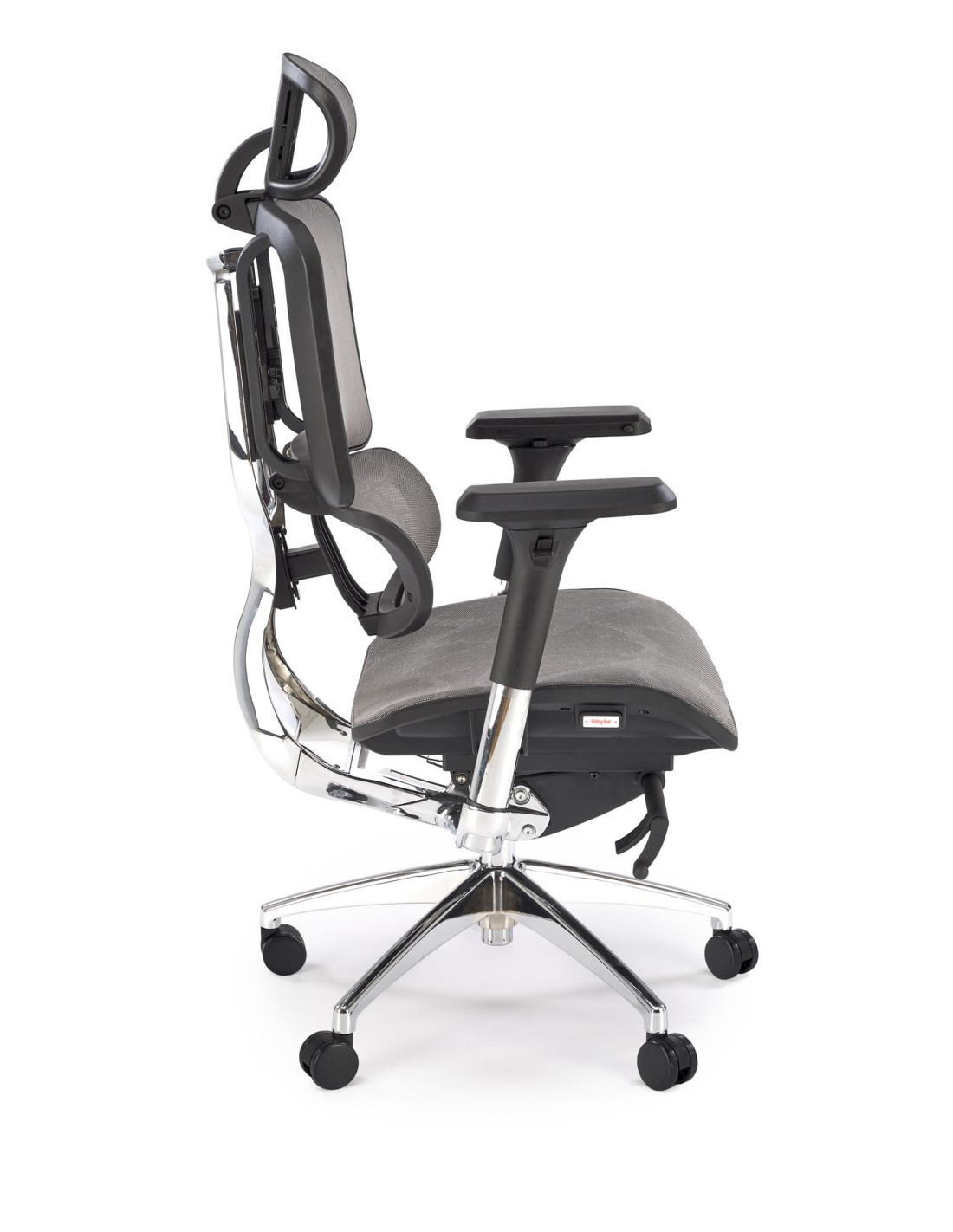 Stwórz doskonałe wnętrze z fotelem biurowym ETHAN, który harmonijnie łączy nowoczesny design z ergonomicznym komfortem. Jego wyjątkowy kształt oraz regulowane oparcie, podłokietniki i zagłówek sprawiają, że każda chwila spędzona w tym fotelu staje się prawdziwą przyjemnością. Siatkowe wykończenie siedziska i oparcia zapewnia doskonałą wentylację, co jest niezwykle istotne podczas długich godzin pracy. Chromowana, pięcioramienna podstawa z kółkami zapewnia nie tylko elegancki wygląd, ale także mobilność, umożliwiając łatwe poruszanie się po biurze.
